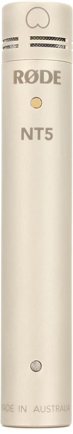 The RODE NT5 is an amazing, 20Hz-20kHz condenser microphone with low noise specs and full frequency response. The NT5 is ideal for recording acoustic instruments, drum overheads, cymbals and live performances. The compact externally polarized microphone employs a 1/2 inch capsule and an active J-FET impedance converter with bipolar output buffer. Details include a heavy-duty cast metal body with a satin nickel finish and a cardioid polar pattern. The NT5 requires phantom power and includes a WS5 custom windscreen, RM5 stand mount and the ZP1 zip pouch.