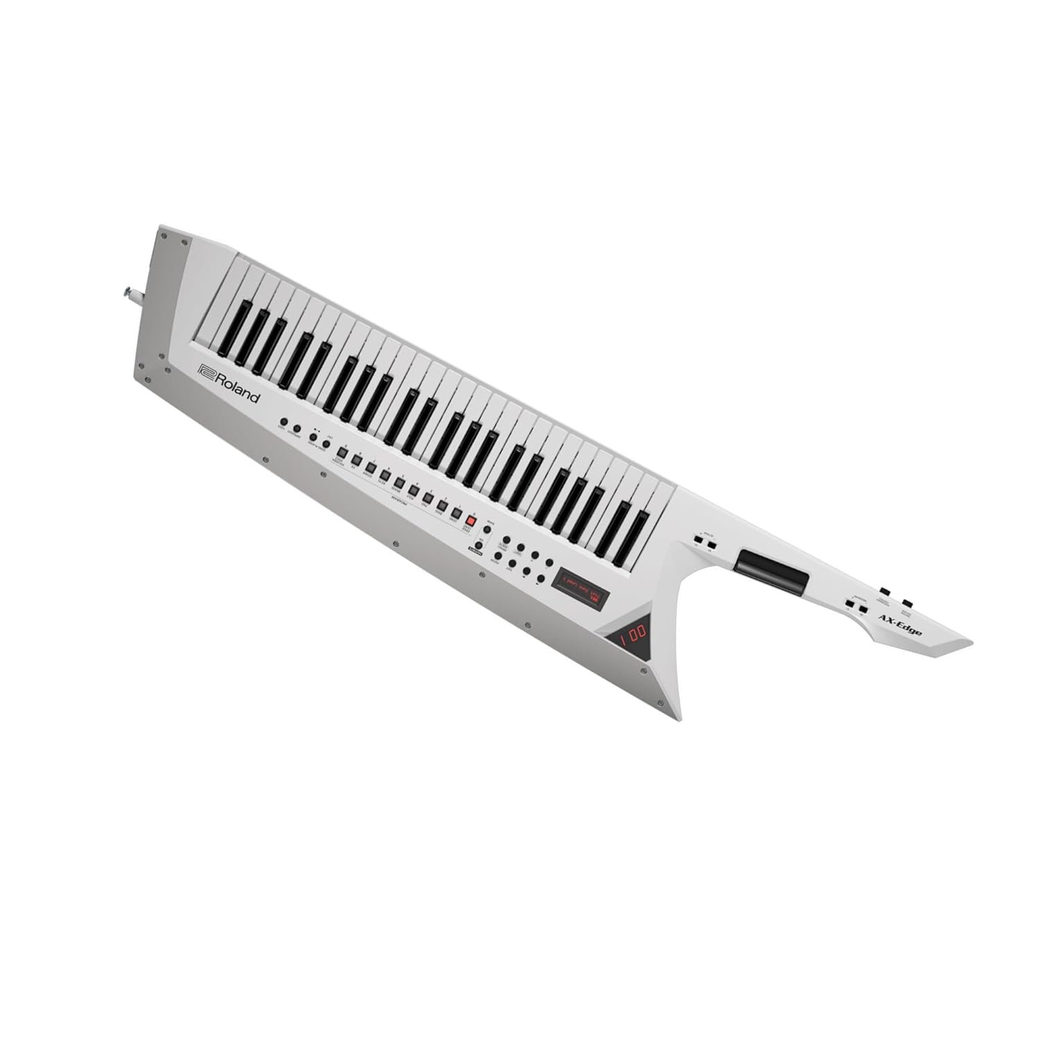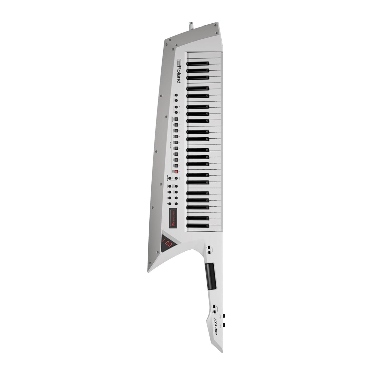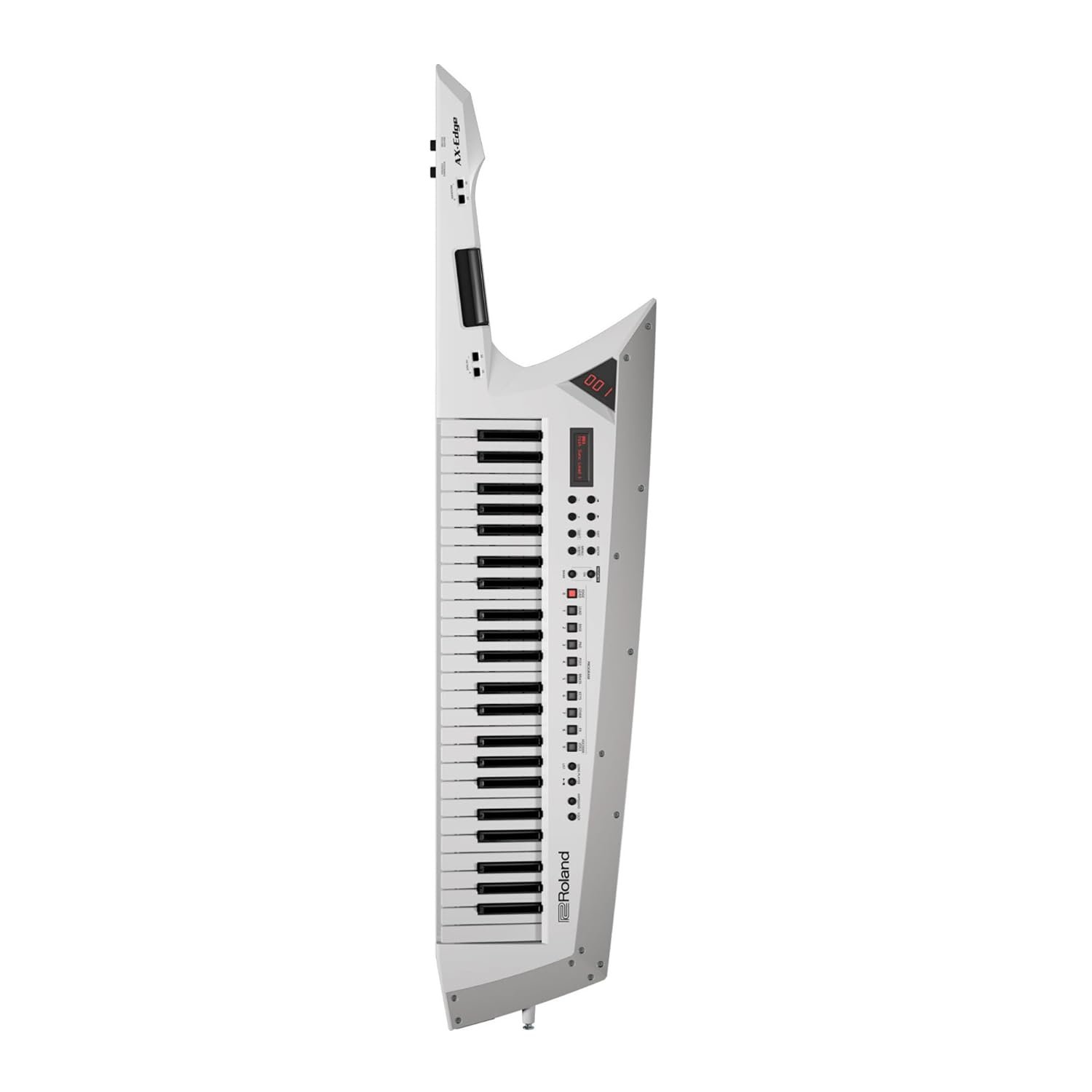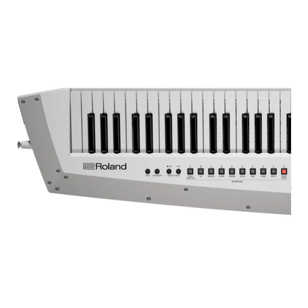 49-Key keytar synthesizer and USB MIDI controller with 256-note polyphony, 500+ onboard sounds, ribbon controller, modulation bar, and optional battery power – White.