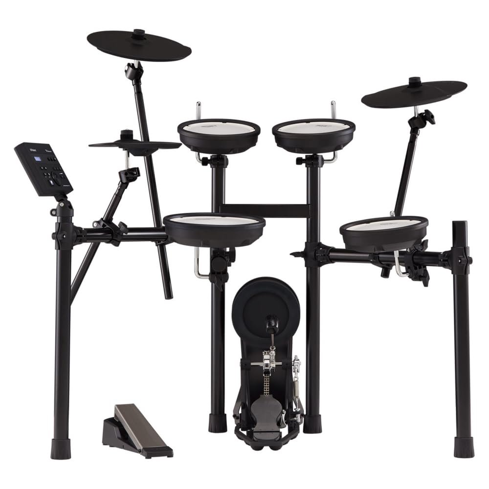 - Roland’s original ultra-quiet, double-ply mesh heads feature across the snare and tom pads, while large crash and ride pads and a dedicated kick pad with realistic, satisfying pedal feel round out the kit.