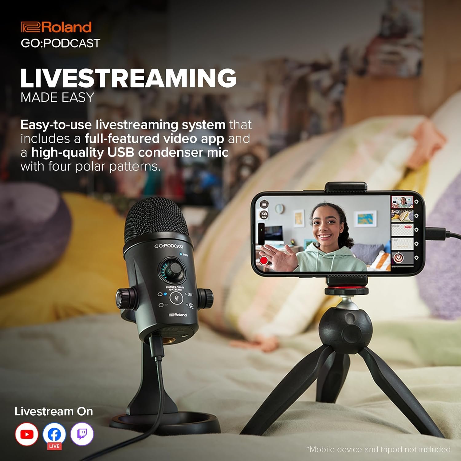 GO:PODCAST is an integrated livestreaming system with the perfect blend of superior quality and intuitive operation. Using the powerful mobile app and versatile USB microphone, creating high-quality streams is simple—even for beginners. From intimate Just Chatting sessions to interviews, demonstrations, and mobile gaming streams, GO:PODCAST helps elevate your online presence with engaging video and crystal-clear sound.
