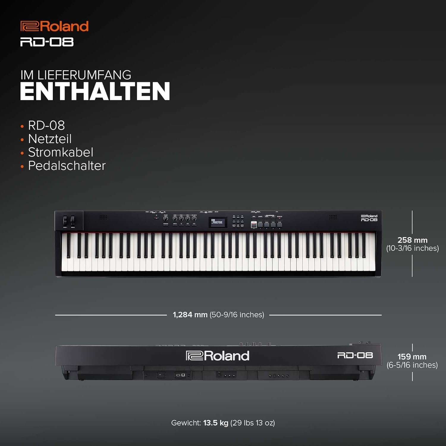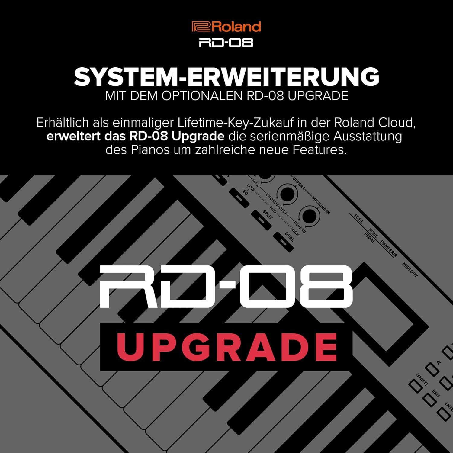 RD-08 Stage Piano Essential RD The RD-08 brings you the legendary Roland RD piano performance in a sleek and sleek keyboard that is easy to carry. Our most affordable RD yet delivers uncompromising sound and playability for professional performance, backed by an intuitive interface for quick navigation in the heat of battle.