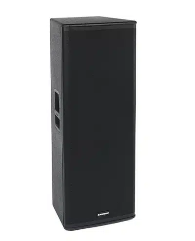 Passive Powerhouse. Samson’s RSX215 is a high performance, 2-way passive loudspeaker ideal for sound professionals and performers looking for serious output and precision sound quality from their PA setup. Perfect for gigging musicians, houses of worship and performance venues of varying sizes, the RSX215 offers professional sound in a versatile cabinet that is ideal for both road and installation applications.   Handling 1,200 watts AES and 4,800 watts Peak of power at 8 ohms, the RSX215 is well-suited for large PA systems. It features two heavy duty, 15″ low frequency drivers with a 3″ voice coils for an extended low frequency response of 40Hz–20kHz (±3dB). The speaker’s detailed high frequency reproduction is created by a Celestion 1.75″ PETP compression driver mounted in a 60° x 90° horn with a 1″ exit. It also features a custom 3-way crossover network (LF1 at 300Hz, LF2 at 2.4kHz, HF at 2.4kHz). The result is brilliant, crystal-clear audio with precision control of the sound field. The RSX215 has dual Speakon® and 1?4″ phone speaker inputs wired in parallel. This enables you to expand your PA system by directly connecting an extension speaker to the RSX215.   The RSX215’s trapezoidal enclosure is constructed of solid 9-layer plywood and finished with a durable black, textured paint. Its black powder-coated, perforated steel grill ensures maximum protection against wear and tear. The speaker’s rugged, roadworthy design also features two integrated carry handles, making transportation of the cabinet a breeze. And for situations that require permanent speaker installation, the RSX215 is furnished with 12 M10 (10mm) fly points.