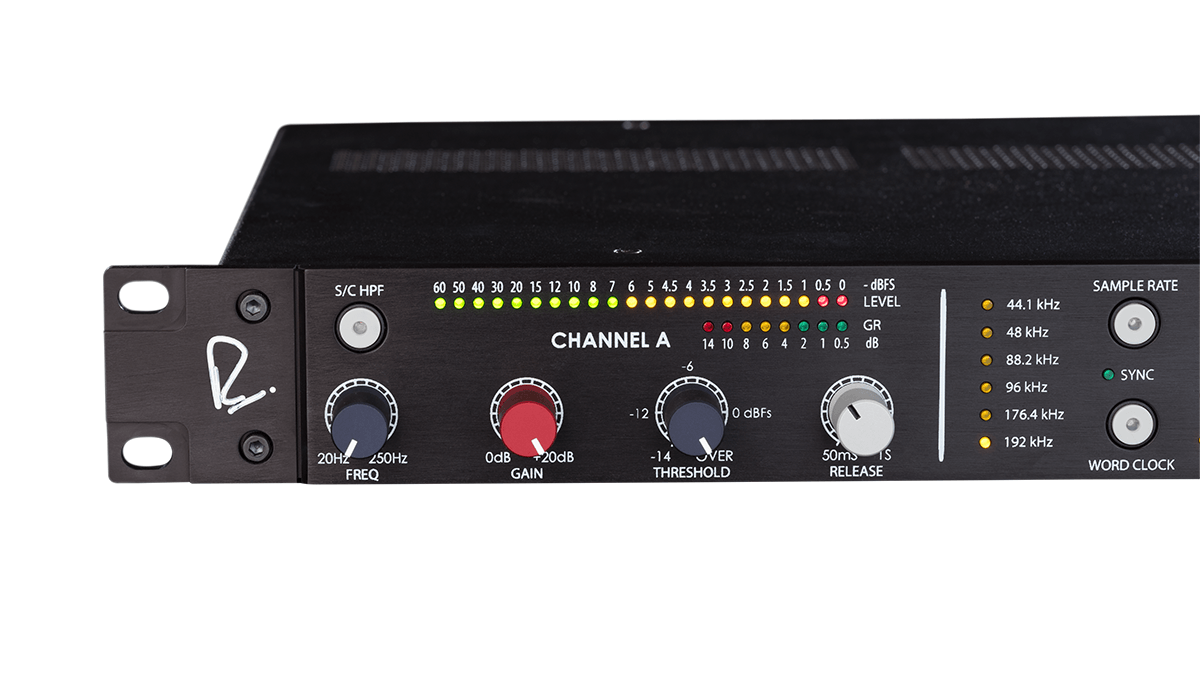To further adapt the sound of the limiter, we’ve added a number of controls to fine-tune its response. The built-in Side Chain High-Pass Filter, sweepable from 20-250Hz, minimizes the limiter’s reaction to low frequencies, which tend to be more sustained in nature than high frequencies. The threshold control sets the maximum levels for your digital signal, and the variable release time constant alters the response characteristic to better fit different source material. To further push levels into the limiter, the class-A line amp stage is capable of adding 20dB of ultra-clean gain. The limiter may be used as a dual mono or stereo linked design via the Link switch, depending on the desired use.