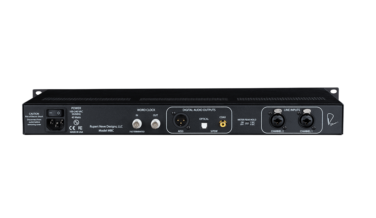 To connect into your interface or digital console, the MBC is equipped with AES, S/PDIF and TOSLINK outputs capable of simultaneous output to multiple destinations. The word clock output allows the MBC to act as high-end master clock for your entire setup, and the word clock input allows external sync to a