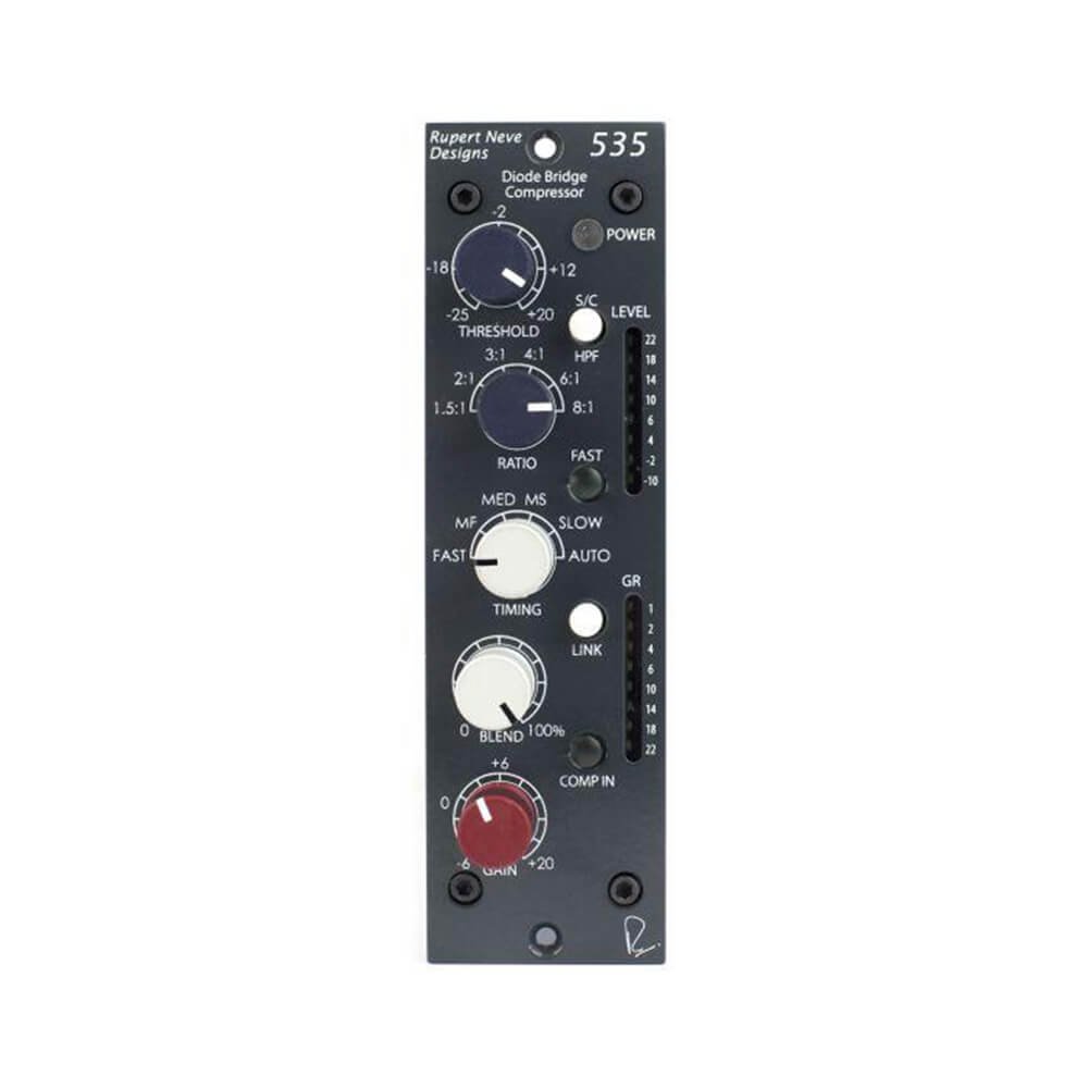 In summary, the Rupert Neve Designs 535 is more than just a compressor; it is a meticulously engineered processor that combines vintage tonal warmth with modern functionality. It empowers you to sculpt your audio with precision and musicality, ensuring your mixes stand out with clarity and depth. Confidently add the 535 to your 500 series rack and experience the transformative impact it can have on your audio production workflow.