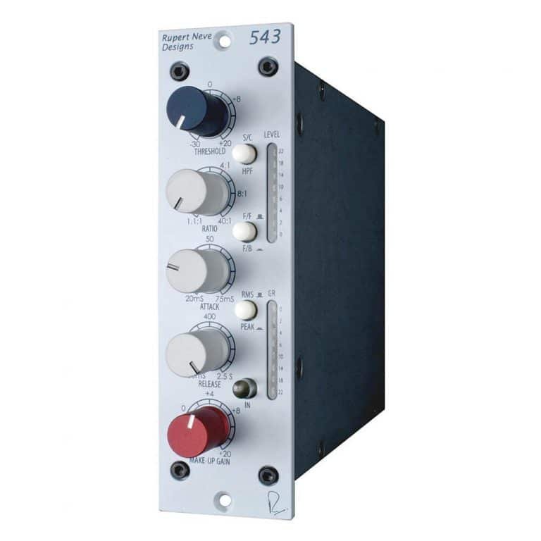 In summary, the Rupert Neve Designs 543 Compressor offers precise and versatile dynamic control with various settings and modes, making it a powerful tool for audio engineers and producers looking to shape the dynamics of their audio signals. Its combination of features, including feed-forward/feed-back modes, Peak/RMS detection, and stereo operation, makes it a valuable addition to a 500 series rack.