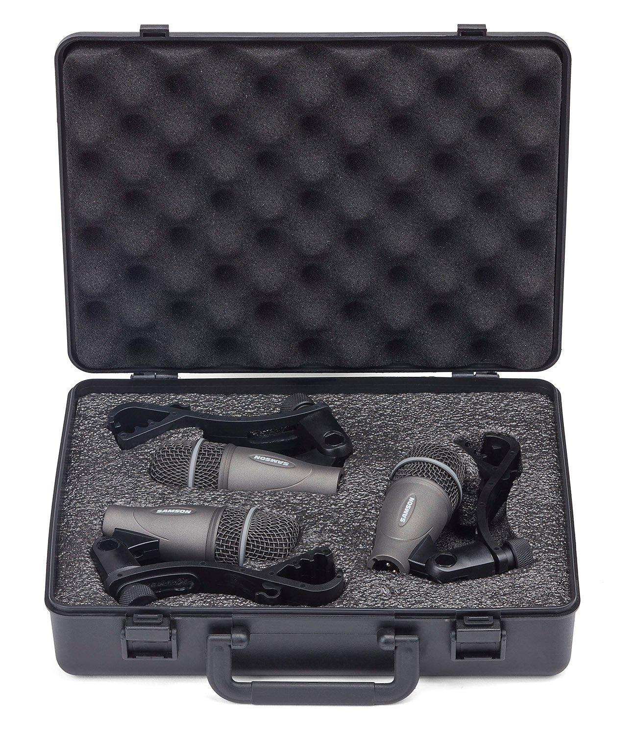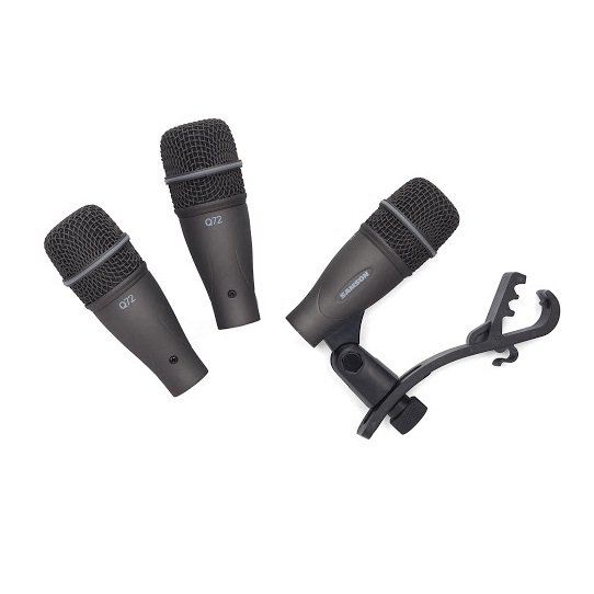 Samson’s Q72 Mic The DK703 includes three Q72 Instrument Microphones that can be used on both snare drums and toms. Featuring a specialized frequency response, the Q72s help reproduce the natural tone and attack of your drums. The included swivel-style mic adapters and tension-mounted rim clips let you place the mics without affecting your performance, while a deluxe hardshell carry case is provided for portability and easy storage.