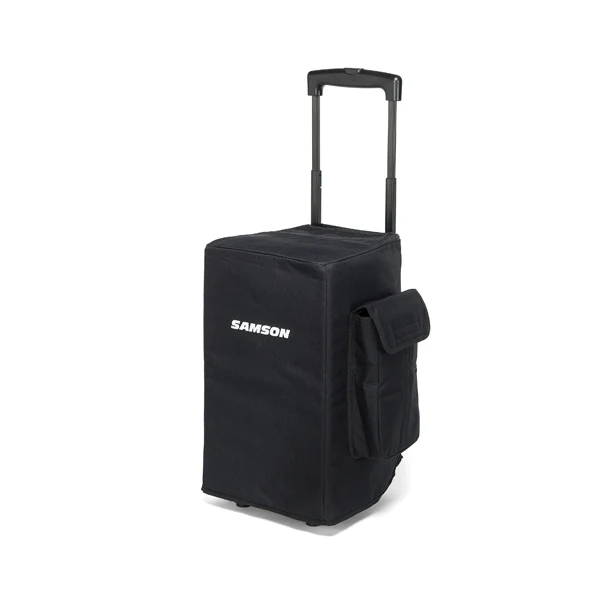 The SADC310 from Samson is a dust cover meant for the Expedition XP310w Portable PA system. It’s sized specifically for the XP310w. On the side, you’ll find a pouch to house a microphone and cables during transport or in times of storage. The pocket sports hook-and-loop fasteners to keep the microphone from being exposed to the elements.