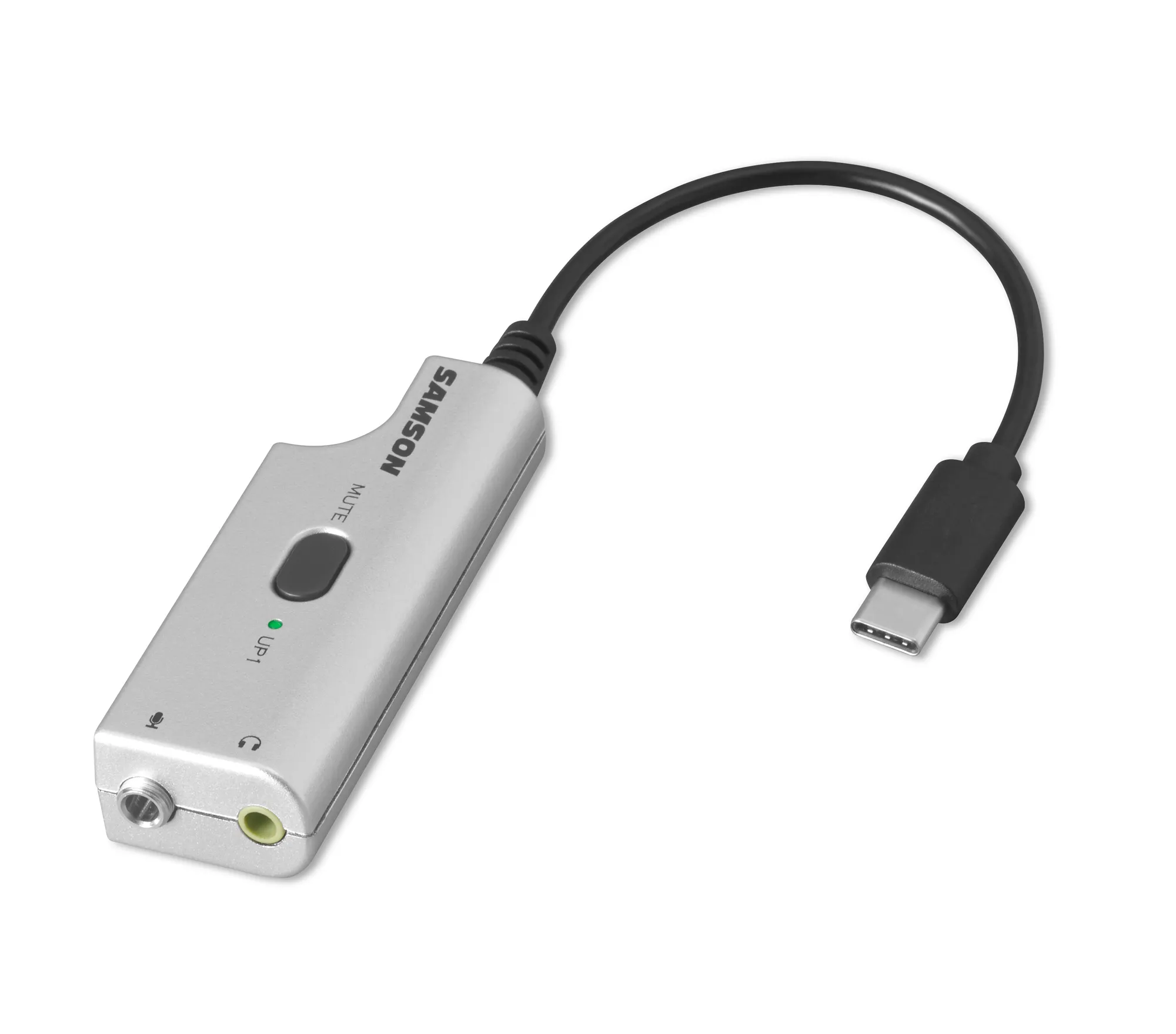 The UP1 is an analog-to-digital USB audio adapter with a 1/8″ (3.5 mm) microphone input and a 1/8″ (3.5 mm) headphone output. It features a USB Type-C connector and includes a USB C to USB A adapter for connection to any computer.
