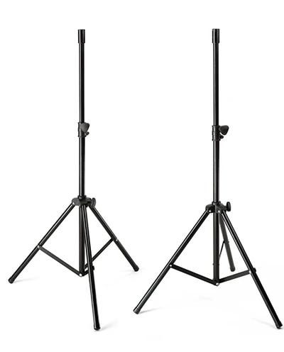 Two lightweight, telescoping tripod speaker stands