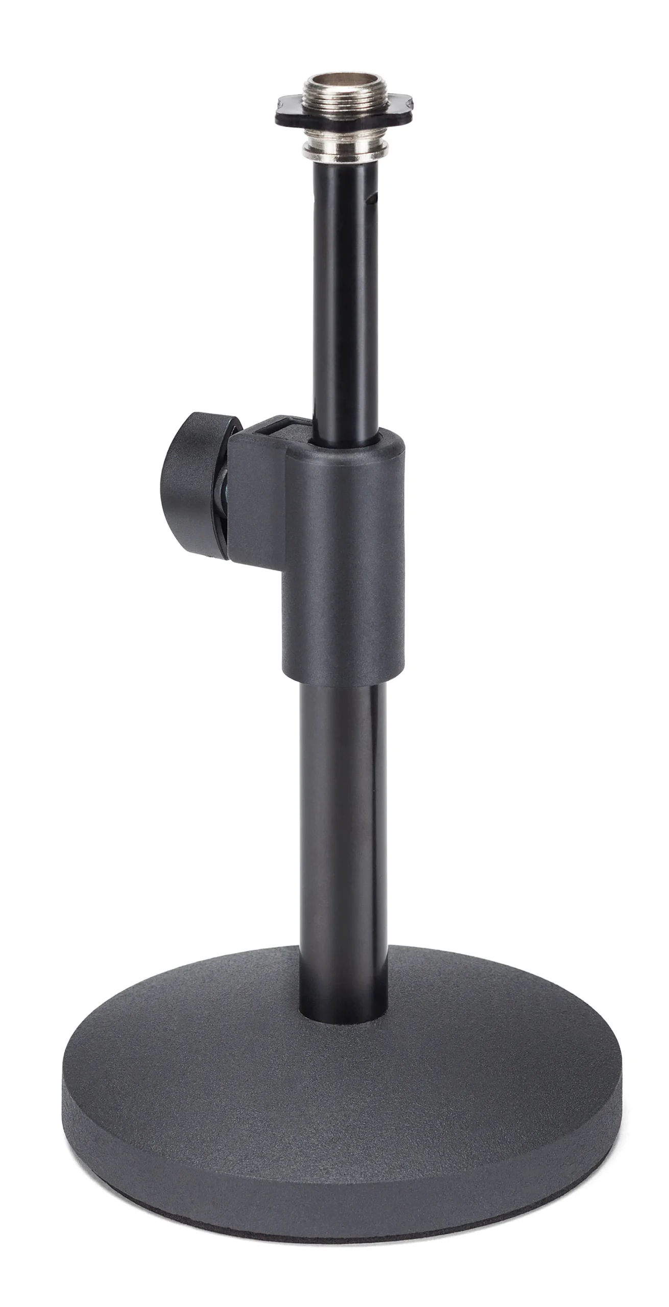 The MD2 Desktop Microphone Stand is the ideal microphone accessory for any desktop studio. Featuring a telescoping arm, the MD2 is easily adjustable from 6-9″ in height, allowing for optimal and versatile positioning of desktop microphones. While it’s low-profile design fits unobtrusively on desktops, the MD2 offers a weighted die-cast metal base (4″ wide) to ensure stability for any microphone with a standard 5/8″-27 threaded mic clip. It’s perfect for podcasting, voiceovers, music recording, or any desktop application where optimal microphone placement is essential.