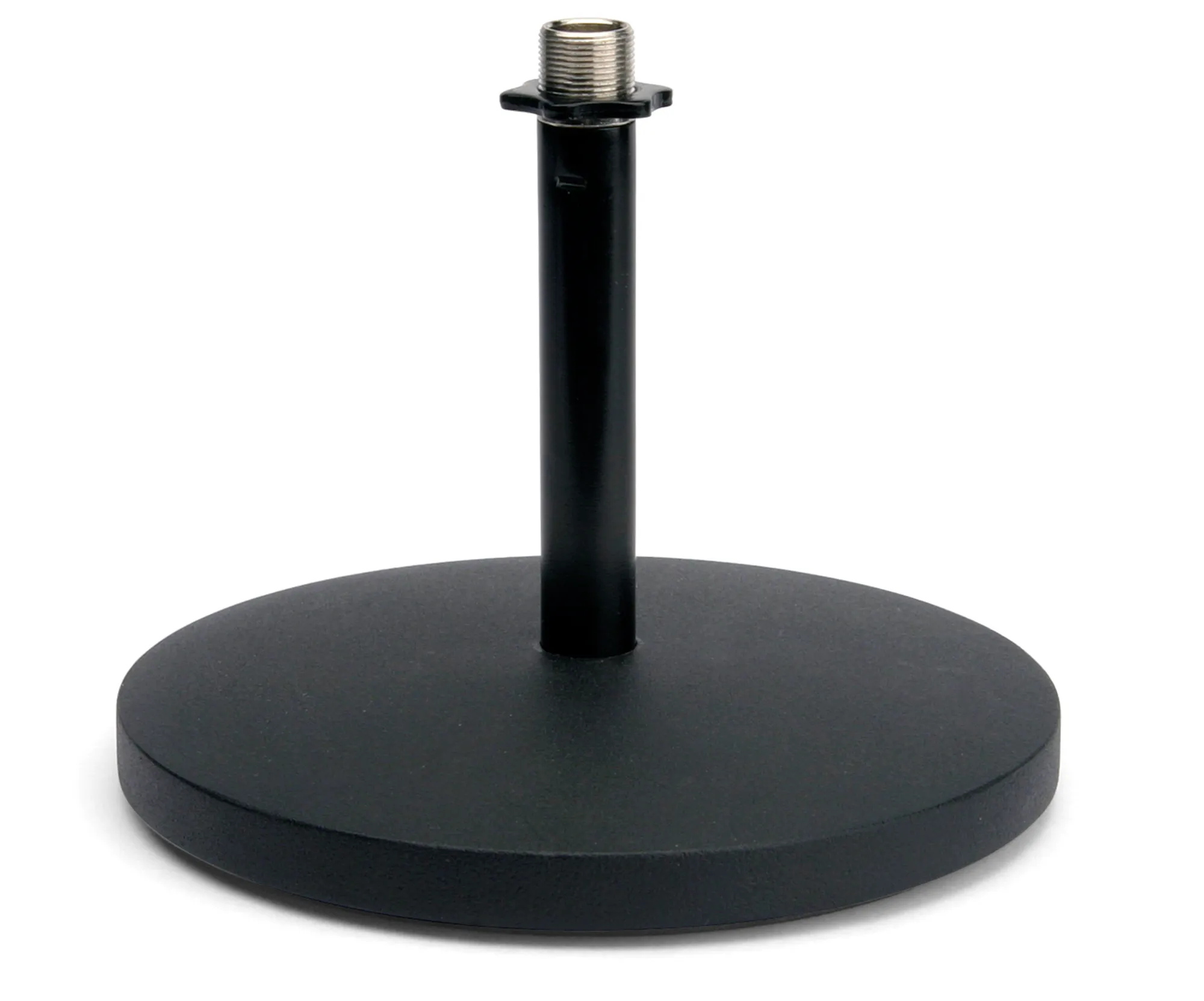 The MD5 Desktop Microphone Stand is the ideal microphone accessory for any desktop studio. The MD5 measures 5″ in height to allow for optimal positioning of the desktop microphone. While its low-profile design fits unobtrusively on desktops, the MD5 features a weighted die-cast metal base (6.25″ wide) to provide maximum stability for any microphone with a standard 5/8″-27 threaded microphone clip. It even works well with the Samson SP01 Spider Shockmount. The MD5 is perfect for podcasting, voiceovers, music recording, or any desktop application where optimal microphone placement is essential.