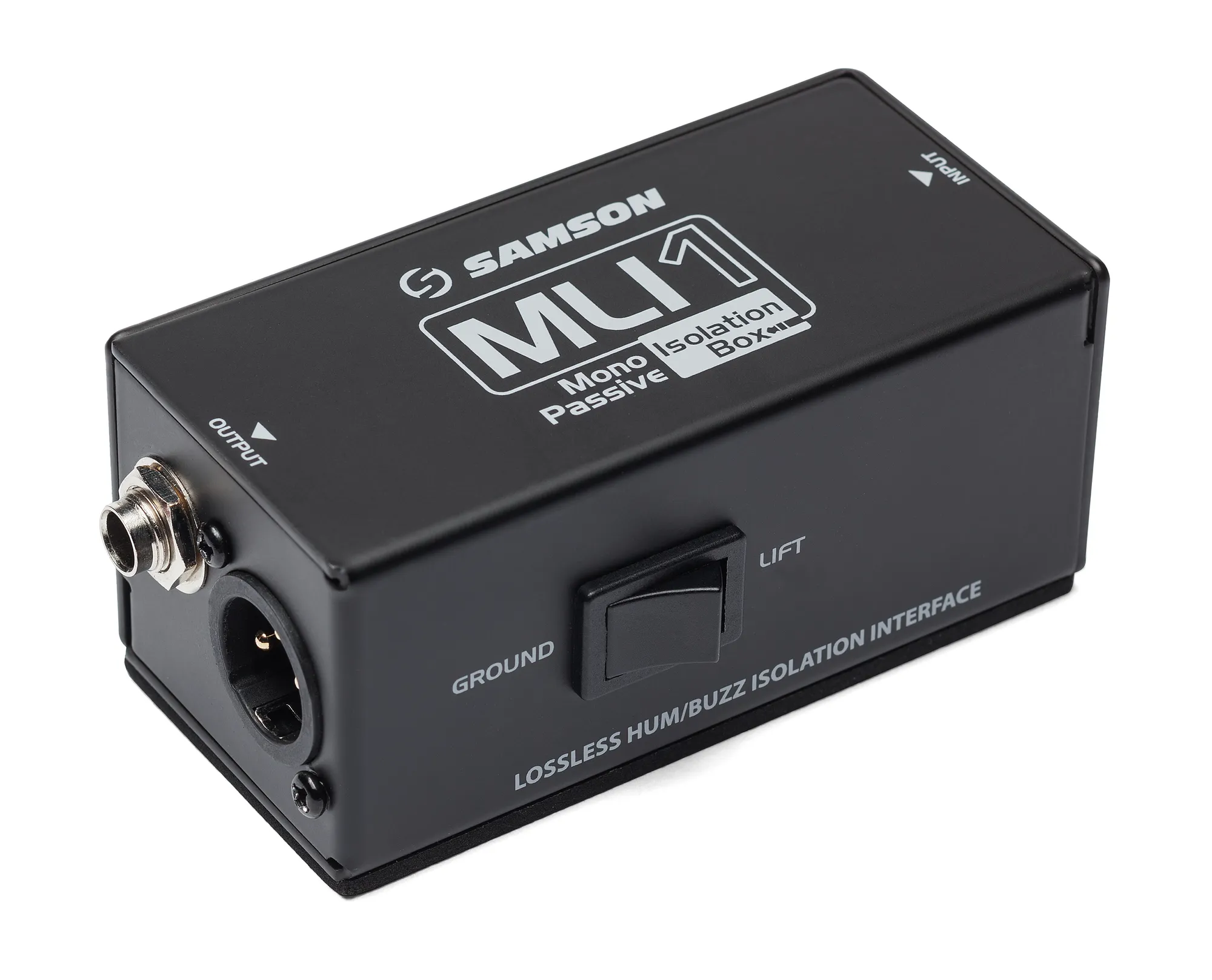 The Samson MLI1 is a passive, line-level isolation box designed to eliminate hum and buzz caused by ground loops and to convert unbalanced signals to balanced over long cable runs. Combining premium sound circuitry with durable, rugged construction, the MLI1 provides high-quality signal interconnection solutions for live, broadcast, and studio applications.