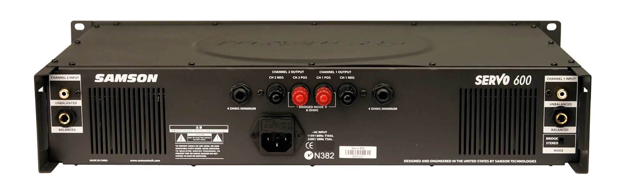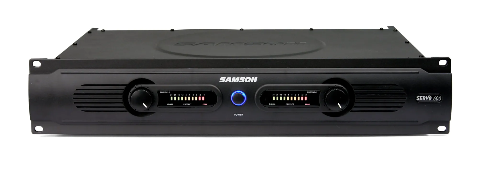 The Servo 600 is ideal for larger applications where added power is needed to drive multiple speaker chains, or larger format speakers.The Servo amplifiers feature large 10-segment 3-color level LED meters and independent channel volume controls. The rear panels include 1/4-inch balanced and RCA input connectors, as well as 5-way binding post and 1/4-inch speaker outputs. 4-stage power protection circuitry that ensures optimal performance and protection of connected components.