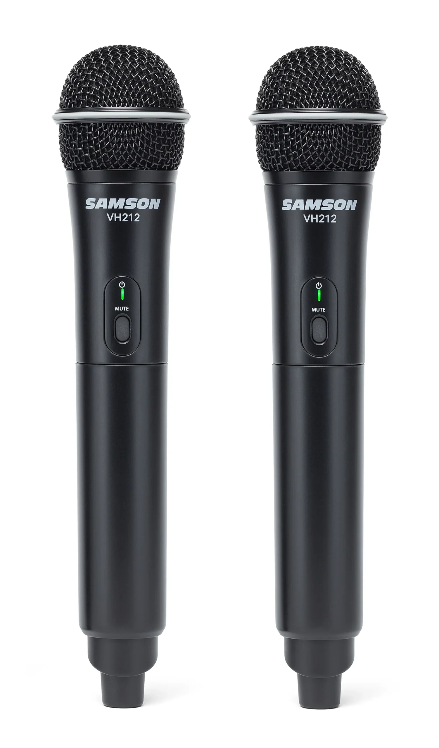Stage 212 is a frequency-agile, dual-channel wireless microphone system that provides two dynamic handheld microphones that transmit to a single rugged metal receiver. Each handheld features Samson’s Q6 dynamic microphone element, providing crisp, clear sound and reliable VHF wireless performance for home karaoke, live presentations, education, houses of worship, and other two-person applications.