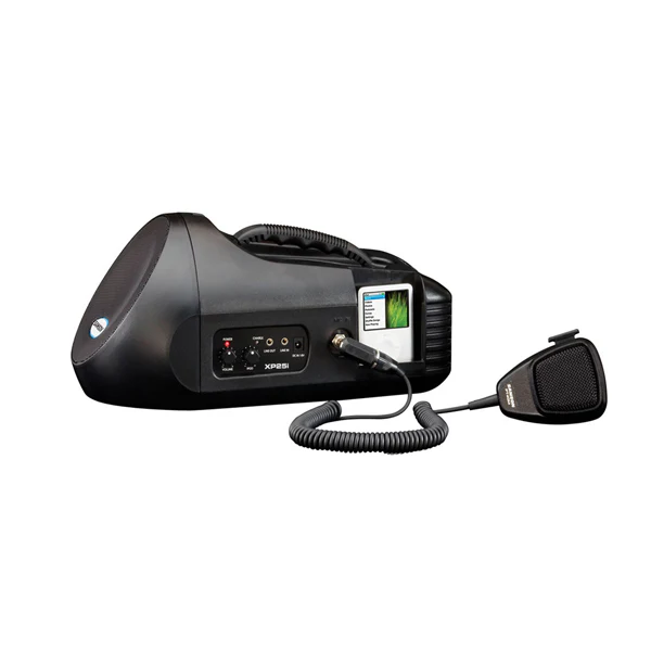 The Samson XP25i Compact PA System gives you all-in-one audio that includes microphone inputs, auxiliary inputs and a built-in dock to connect your iPod. Lightweight and truly portable, the XP25i offers a 25 watt, 6 inch full-range speaker with its own built-in rechargeable battery. Other features include 1/8 inch line in/outputs and the ability to mount the unit to a mic stand using its mic stand adapter. Also included is Samson’s BT30 Bluetooth adapter, which allows you to connect Bluetooth-compatible devices to the XP25i.