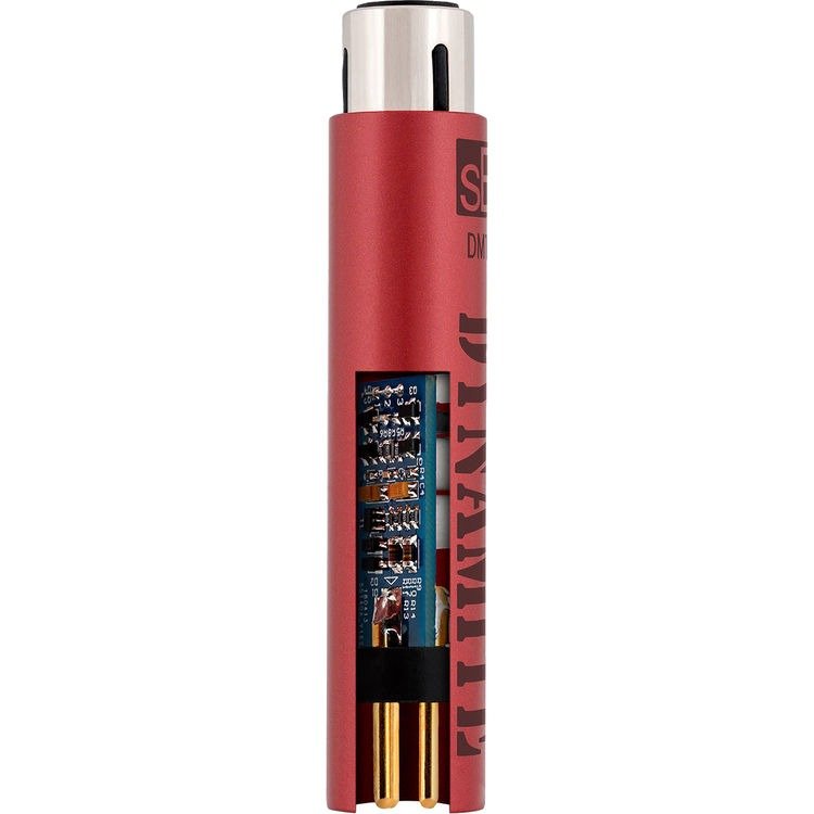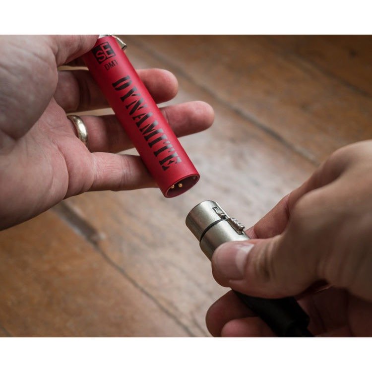 The red DM1 Dynamite Active In-Line Microphone Preamplifier from sE Electronics is an active preamp intended to be inserted between a passive ribbon or dynamic microphone and a microphone preamplifier (sold separately). It can be used to deliver a robust 28 dB of gain to boost the audio signal of a passive mic, which improves the level through the preamplifier without adding noise or coloration.