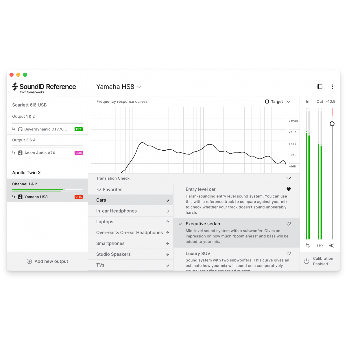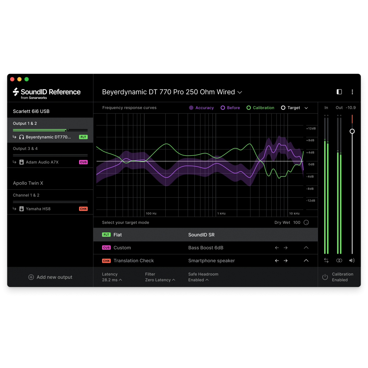SoundID Reference for Multichannel works by applying a calibration profile to your monitoring output, supplying you with a ruler-flat response across all audible frequencies.