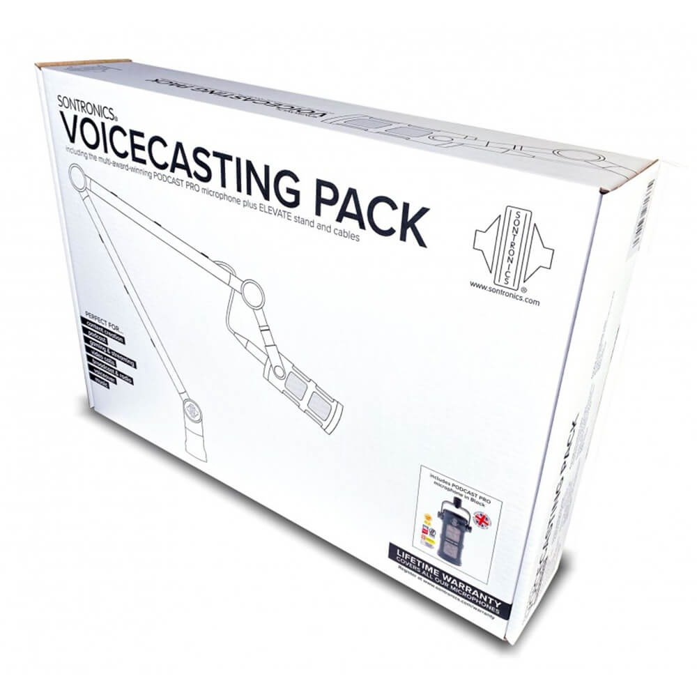Crafted from durable, powder-coated aluminium, the Podcast Pro microphone and Elevate stand are built to withstand daily use in home studios and professional environments alike. Every microphone in the Voicecasting Pack is hand-assembled and rigorously tested at Sontronics HQ to meet the highest quality standards. Available in seven eye-catching colours—black, red, blue, gold, green, cosmic grey, and purple—the pack combines performance with style. Like all Sontronics microphones, the Podcast Pro is covered by a unique Lifetime Warranty, giving you long-term confidence, dependability, and peace of mind with your investment.