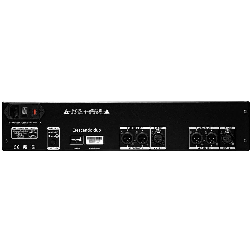 SPL — Sound Performance Lab — is a German pro audio firm that has been on the cutting edge for the past 30 years. SPL hardware may be found in top studios and mastering facilities all around the globe, including the acclaimed Transient Designer, TwinTube, and Vitaliser MK2-T, as well as professional mastering tools like Passeq. SPL has released another innovative product. The Crescendo Duo sets a new standard for high-end mic preamps with its remarkable ability to handle any source without perceptible distortion.