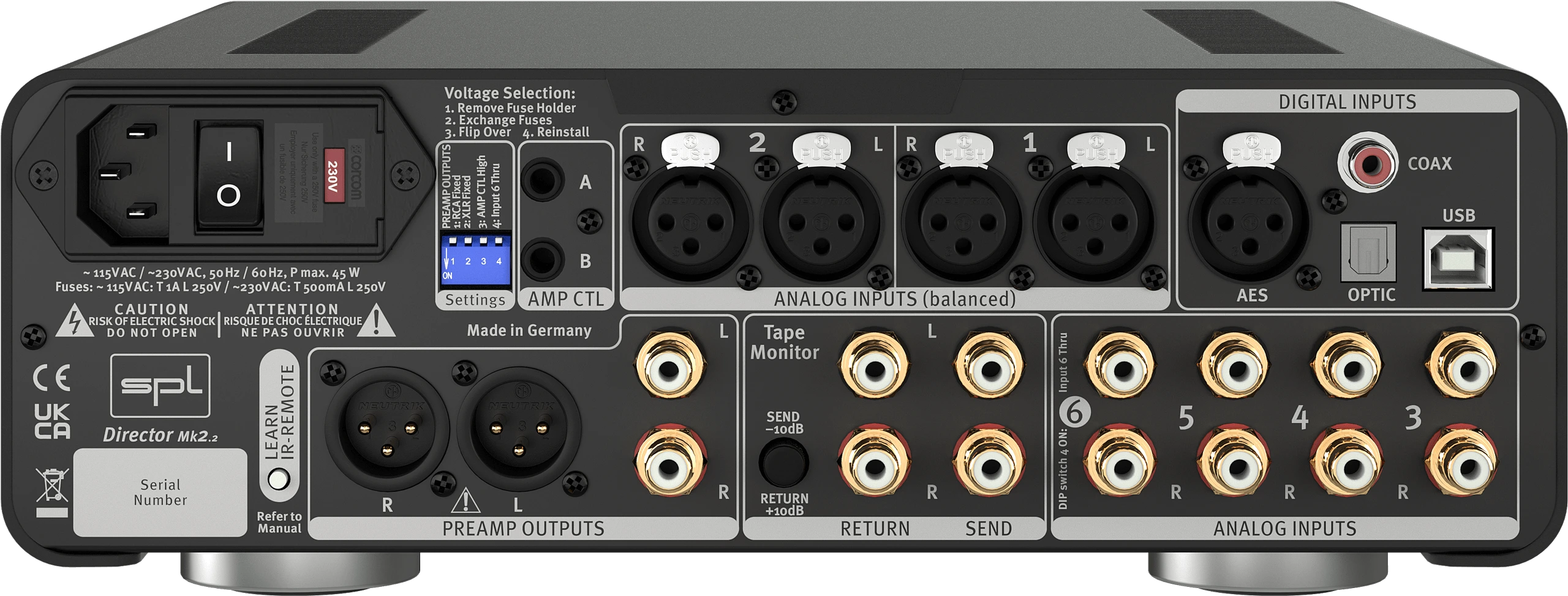 Up to ten (10!) stereo sources can be connected to the Director Mk2. Six of them are for analog and four for digital input signals.