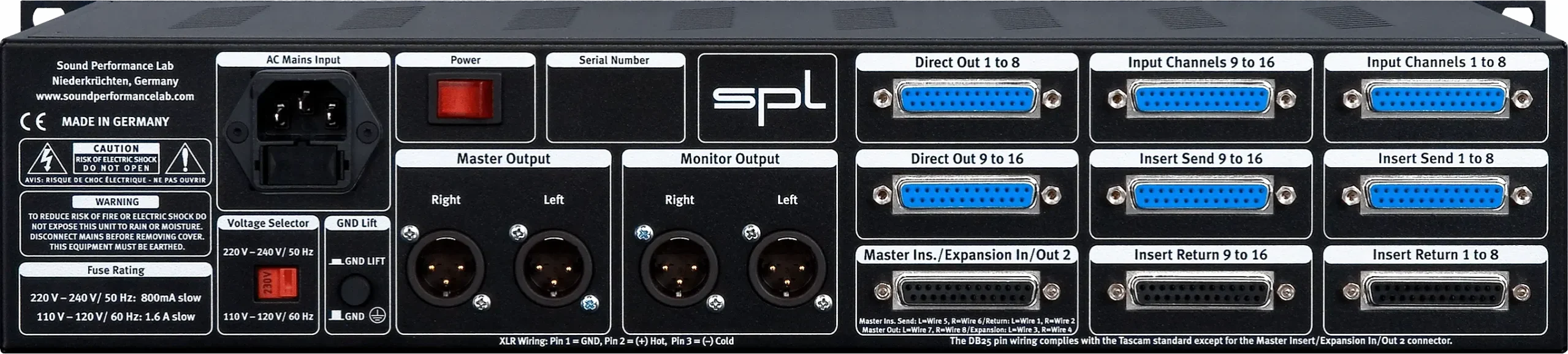| Send/Return I/O: | 2 x DB25 totaling 16 inserts, Master Insert by DB25 |