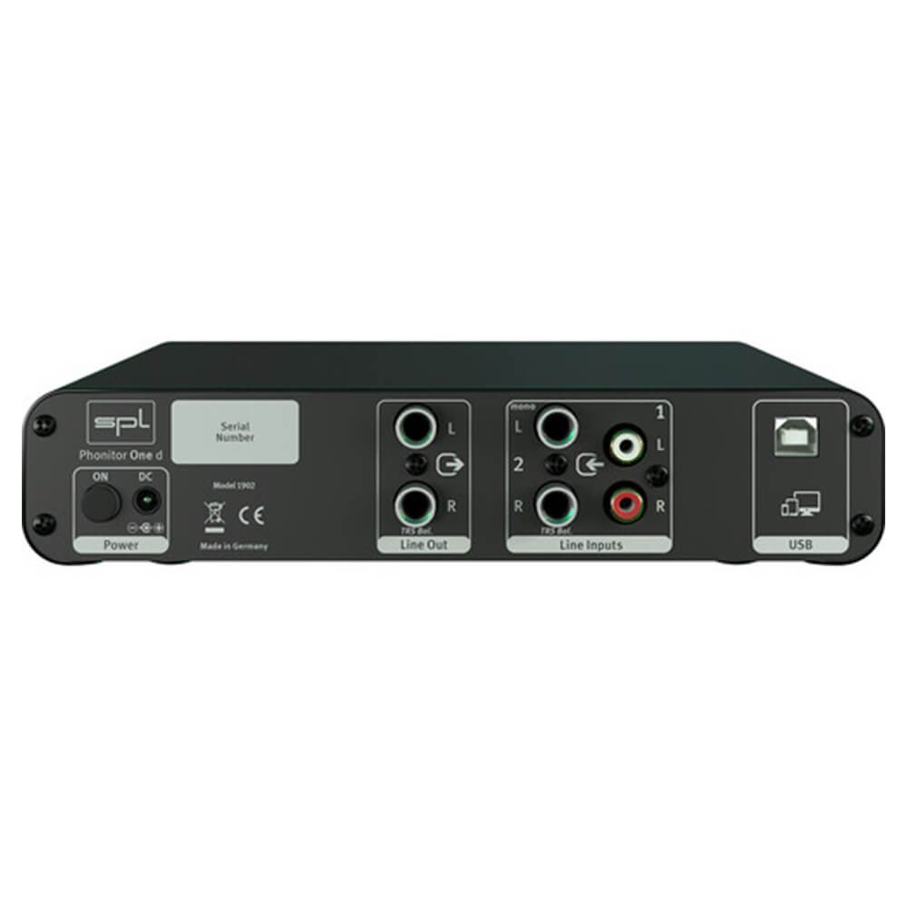 - SPL Phonitor One D Front-panel-selectable stereo inputs: 2 analog (balanced 1/4-inch TRS, RCA); 1 digital (USB)