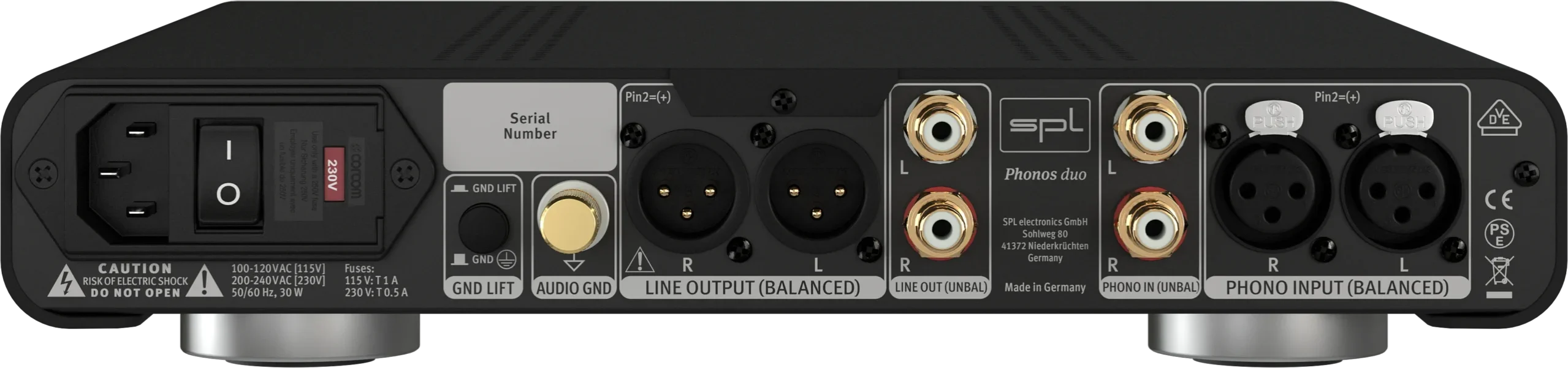Experience unparalleled vinyl playback clarity with the SPL Audio Phonos Duo, delivering precise sound reproduction through its switchable input impedance and adjustable amplification levels tailored for both Moving Magnet and Moving Coil cartridges. Its ultra-low noise design and wide frequency range ensure every nuance of your records is faithfully captured. Discover how this expertly engineered phono preamplifier can elevate your analog audio experience to new heights.
