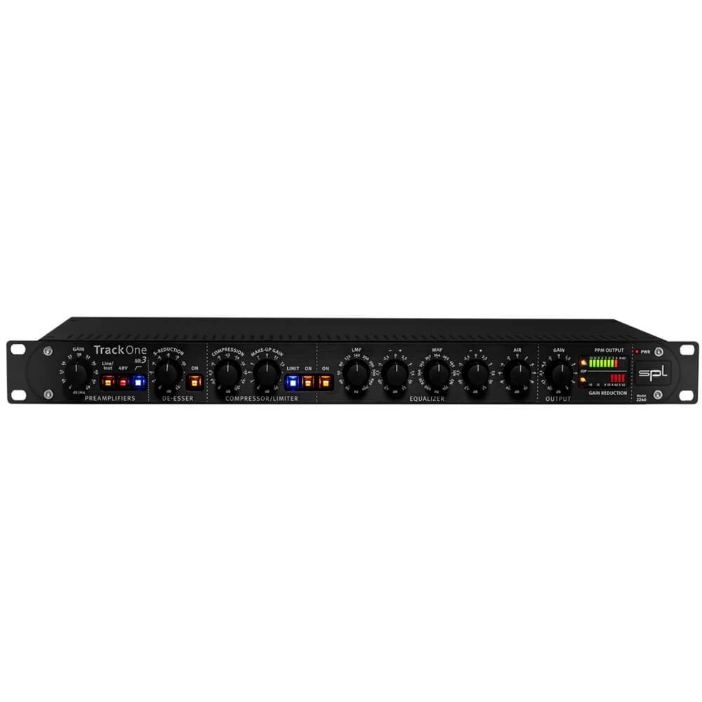The ever-popular SPL Track One MK3 channel strip, now in its third version, has been completely revised with increased specifications and a more straightforward design optimized for today’s recording studios. Track One MK3 consistently offers outstanding sonics, improving vocals and instruments from any source, whether mic, line, or DI. The excellent mic preamp gives enough of a boost for your microphones and instruments, and SPL’s renowned De-Esser is included to control sibilant voices. The SPL Track One MK3 channel strip allows you to optimize your dynamics with the compressor/limiter and sweeten your tone with the 3-band EQ, resulting in radio-ready sound.