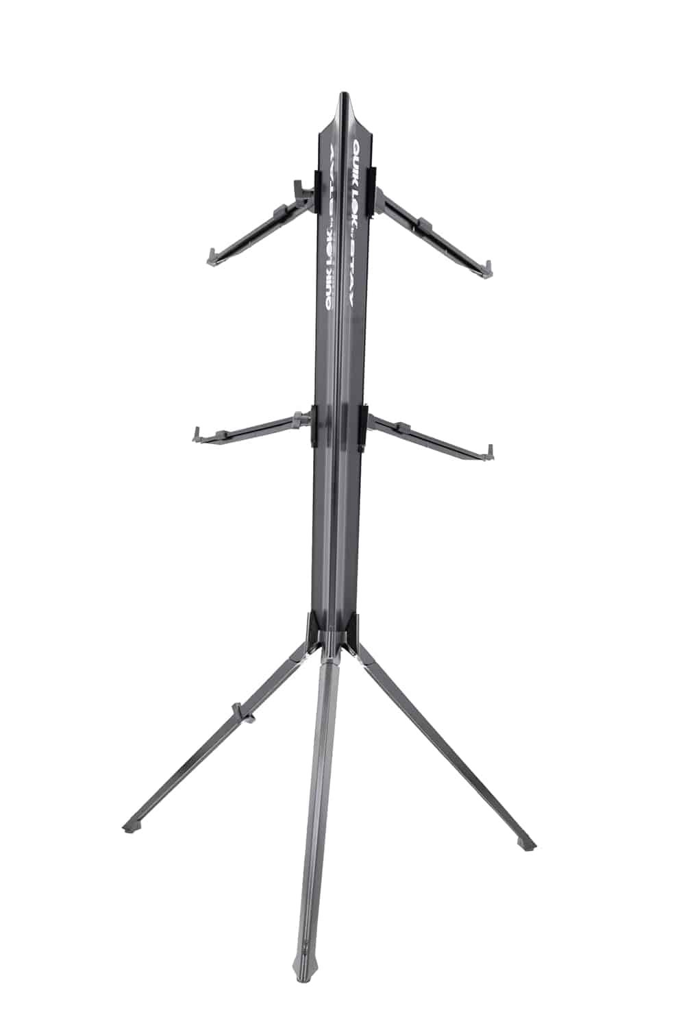 Constructed with 100% aluminum die casting, this two-tier sleek and robust keyboard stand weighs a mere 3.06kg, making it an incredibly lightweight and portable option. Designed to support keyboards with up to 76 keys and weighing up to 60kg, it offers the reliability and strength for musicians on the go. Easy to set up and dismantle, this stand is a perfect choice for those looking to blend functionality with simplicity. Maximum height: 1,300mm Capacity: 69.8kg Weight: 8.19kg Includes: 1 angled base and 1 straight, 1 pair of 45mm straight arms, one pair of 38mm arms