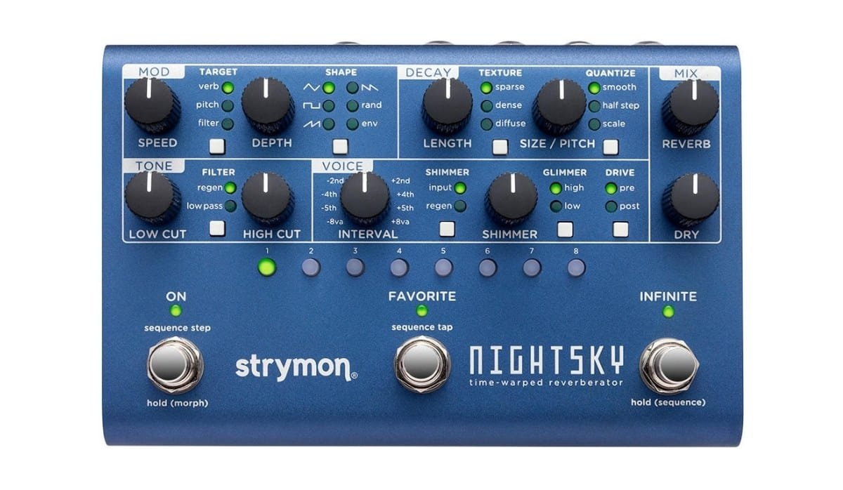 NightSky is a reverberant synthesis workstation, and a powerful, hands-on experimental sound design platform. NightSky gives you real-time continuous control of reverb pitch/processing rate/core size, harmonics, and even a synth-like resonant filter with multiple modulation waveshapes, plus a step sequencer with variable glide. You haven’t heard a pedal like this before.
