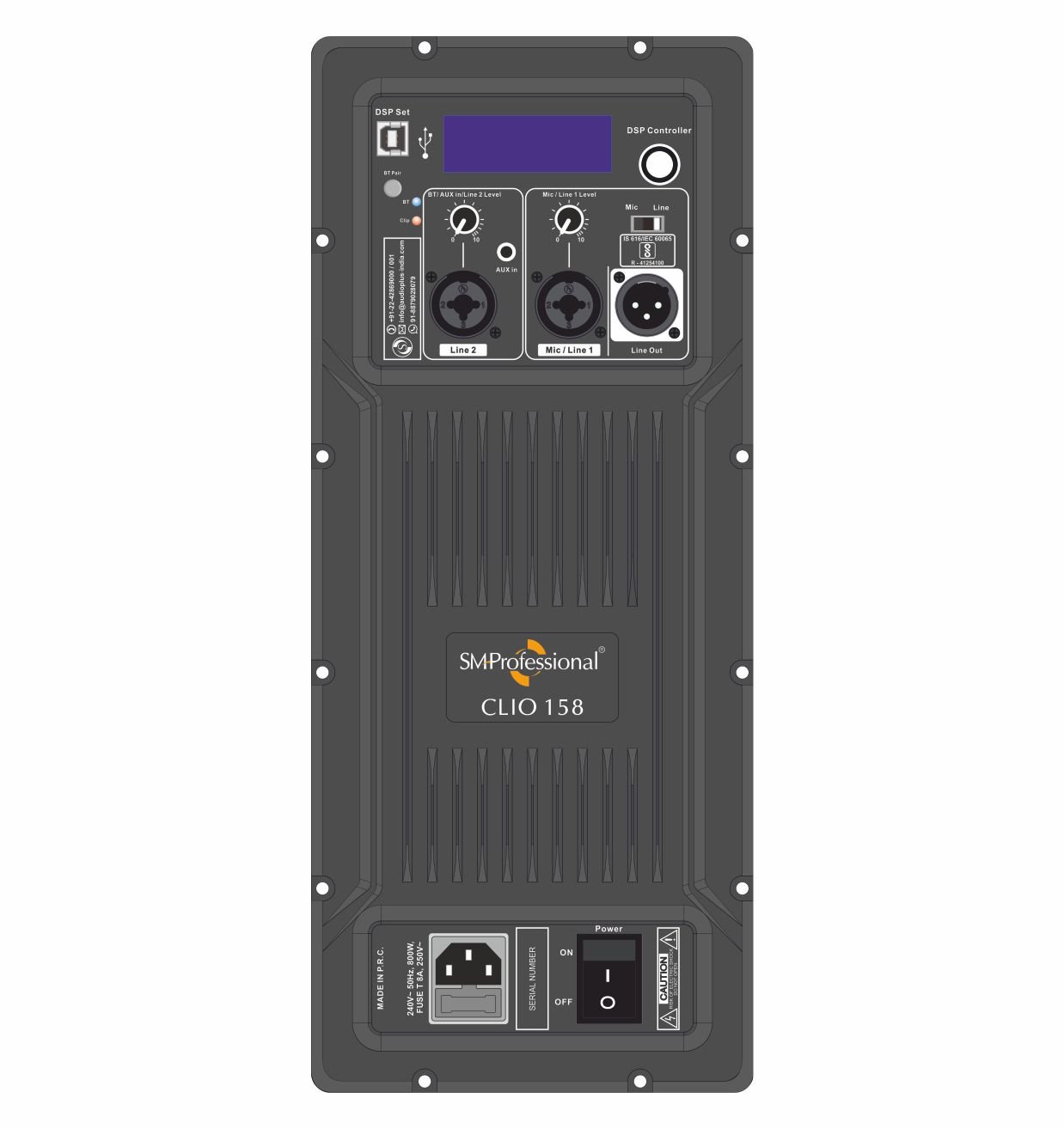 ● The Studiomaster Professional Clio 158 is a high-performance 2-way bi-amplified 600W (RMS) active loudspeaker. Integrating a class D amplifier, PC DSP and EQ editor software to edit and write custom presets and more, the loudspeaker is ideal for a variety of live, DJ, touring and install applications.