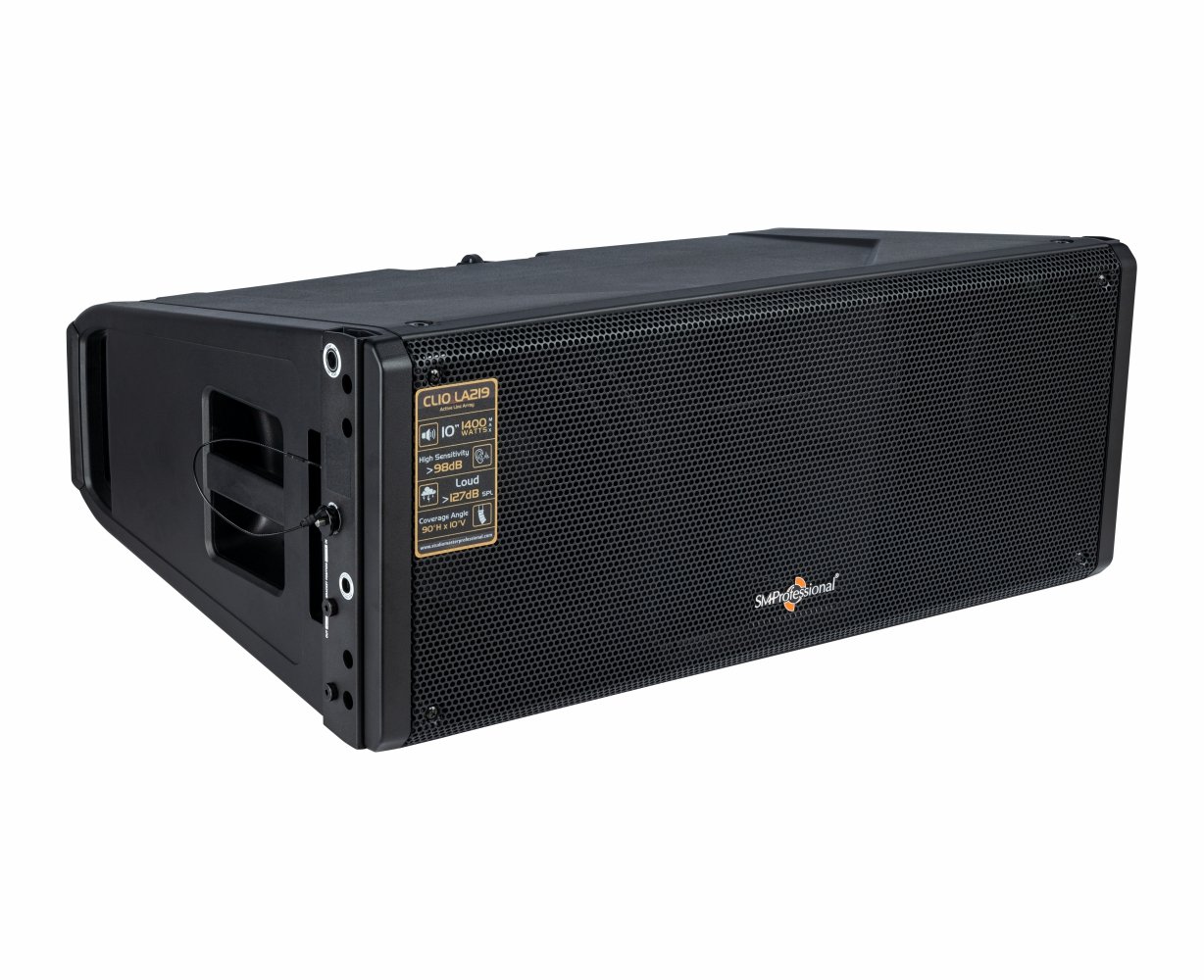 The Studiomaster Professional Clio LA219 is a high performance 700W (RMS) / 1400W (Peak) 2-way bi-amplified active line array system. Integrating 2 x 10” LF driver, class D amplification, easy DSP presets and more, the system is geared to deliver high SPL and a focused dispersion area.