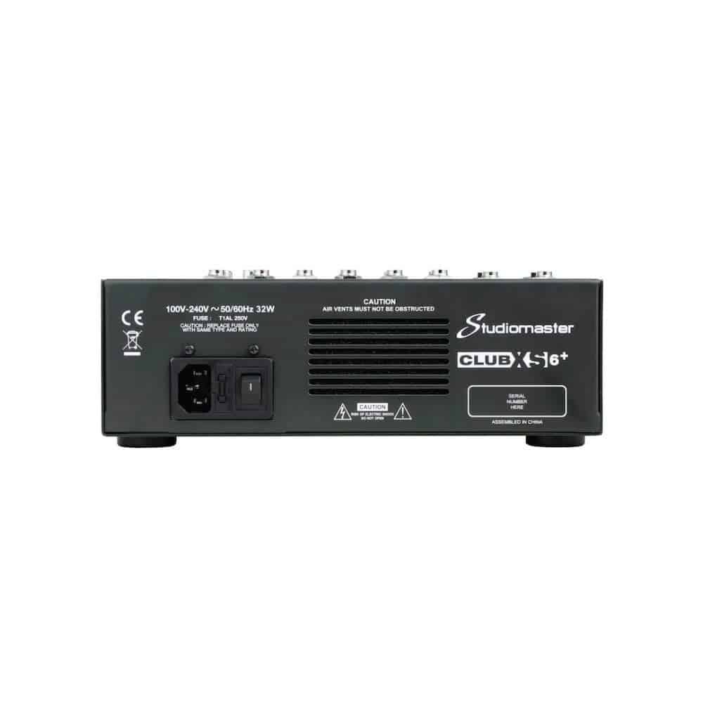 New for 2020, Club XS+ models incorporate all of the great features of the standard Club range, now with the inclusion of a DSP On/Off foot switch socket and an aesthetic overhaul, redesigned control knobs and finished in Studiomaster digital black. Compact, portable mixing consoles featuring 5 to 16 inputs, Bluetooth connectivity, on-board DSP effects and USB/SD card playback and recording functions. 3 band EQ, 2 auxiliaries, balanced mic/line connectors, compressor control, and a useful mute switch on all Mic and line input channels, and 2 band EQ with 2 auxiliaries for both stereo channels. There are also balanced XLR connectors for the main outputs, jack outputs for auxiliaries and control room, and phono connectors for record and playback. Ultra compact, light weight, high quality and extremely versatile, the Club XS is the perfect mixer for any live performance and home recording situation.