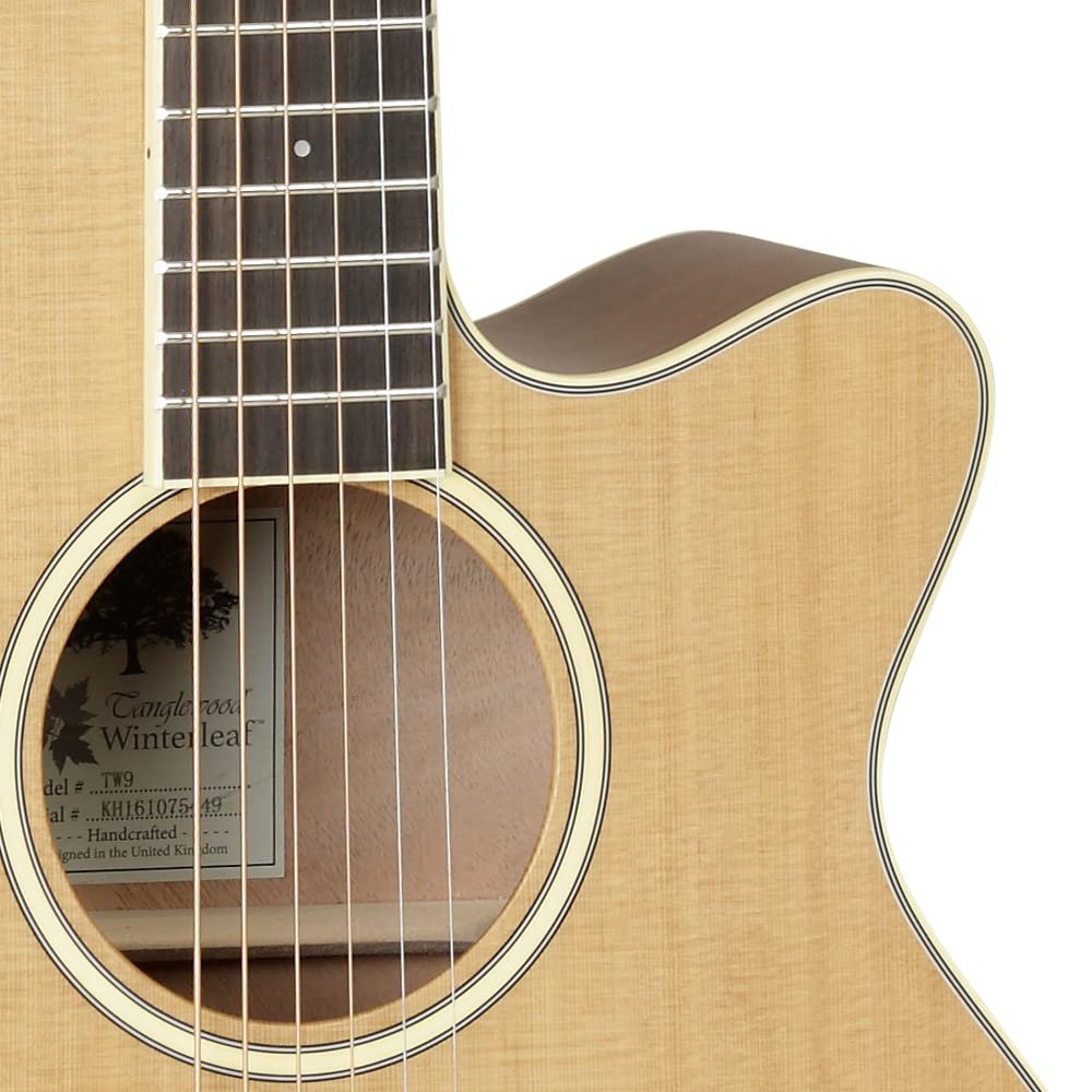 Tanglewood TW9 E Solid Top Super Folk Cutaway Electro-Acoustic Guitar, Natural Satin, Free Padded Bag