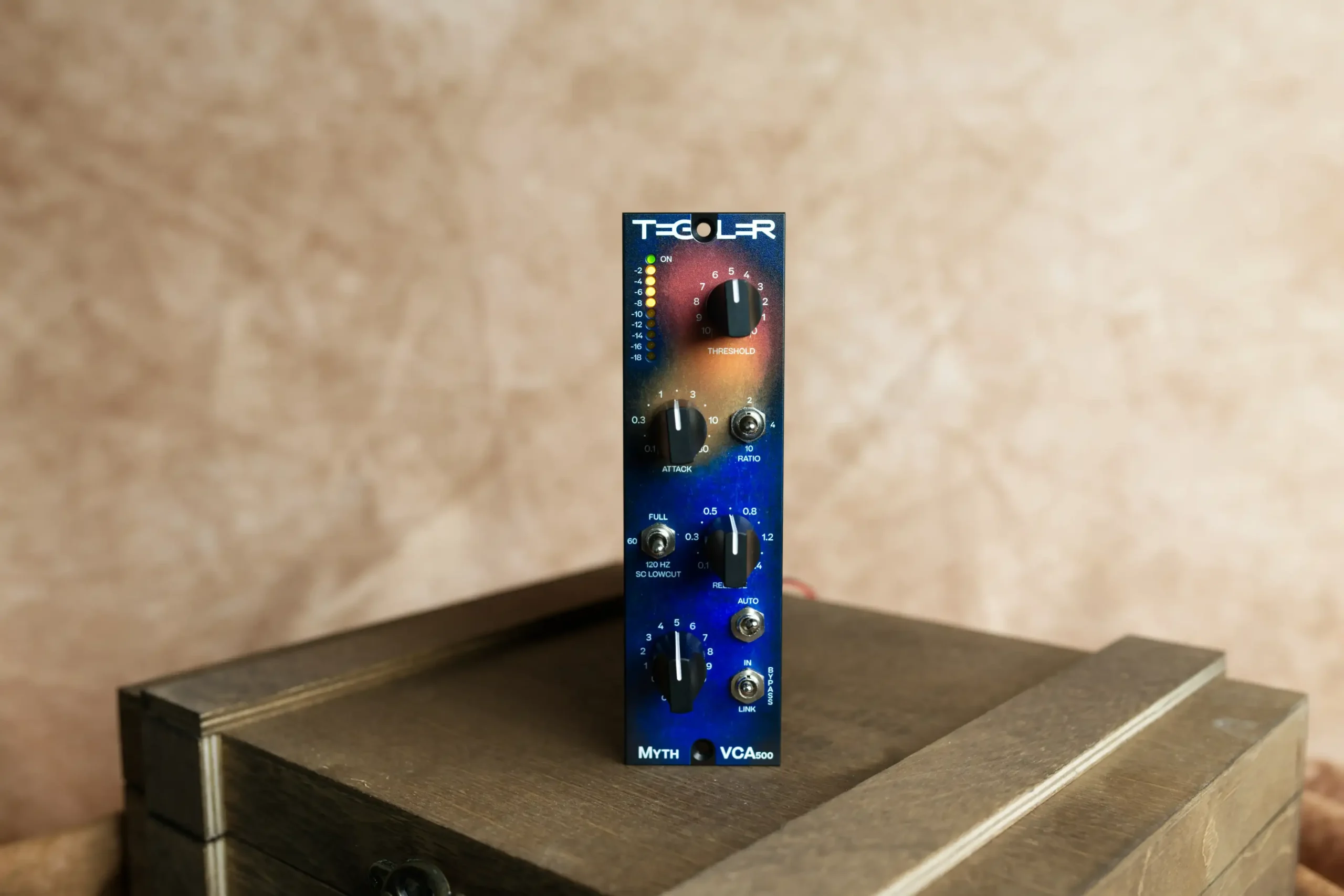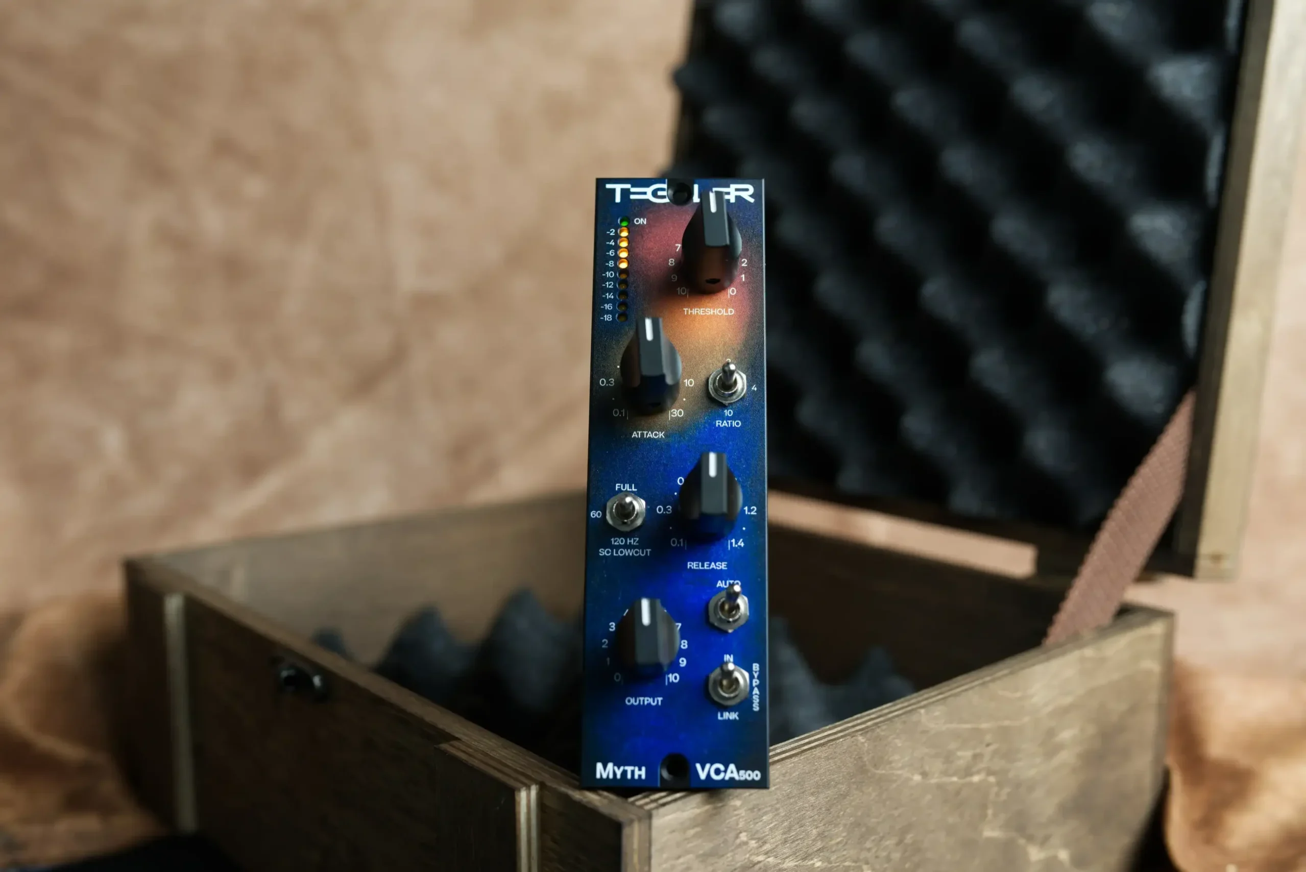 This is the perfect tool to even out any signal you throw at it: the MythVCA has three different ratio settings (2:1, 4:1, and 10:1), attack times between 0.1ms and 20ms, and release times from 0.1ms to 1.4s.