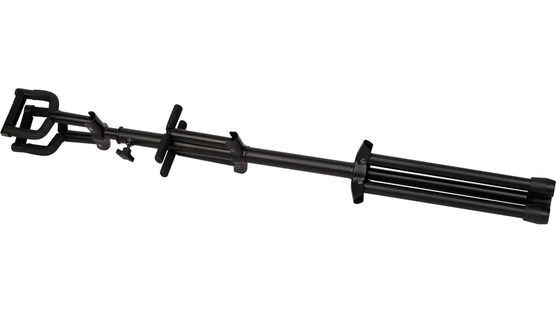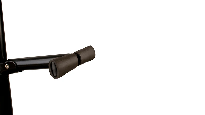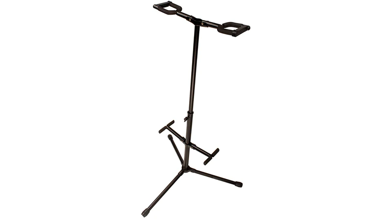 Keep both of your favorite acoustic, electric, or bass guitars safe on stage or in the studio with this dual-guitar hanging guitar stand! The JS-HG102 Double Hanging-style Guitar Stand features heavy duty tubing with a powder-coated black finish and it covered in protective rubber at contact points. The easy-to-use safety gates secure your instruments ensuring they don’t accidentally fall.