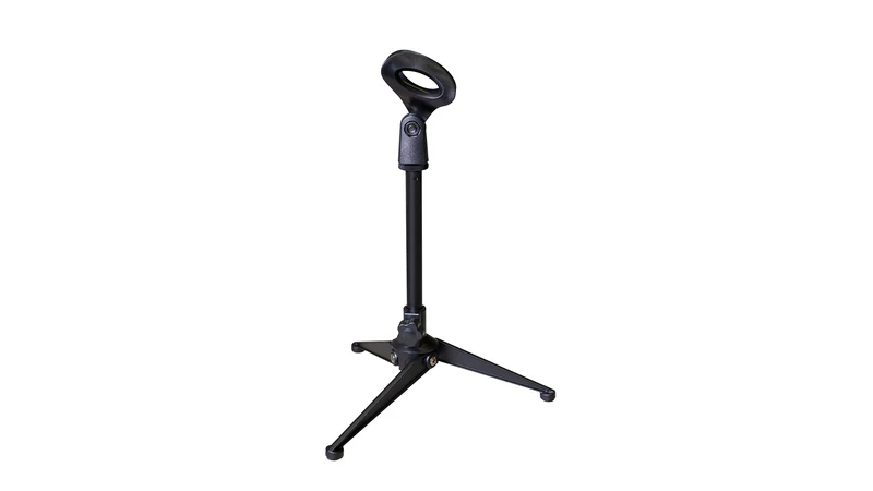 Perfect for podcasters or recording hobbyists just starting out, the JS-MMS1 Mini Desktop Mic Stand comes with an included microphone clip and a scratch resistant powder coated finish. Small folding legs minimize the footprint of the JS-MMS1, making it ideal for even the smallest of workspaces.