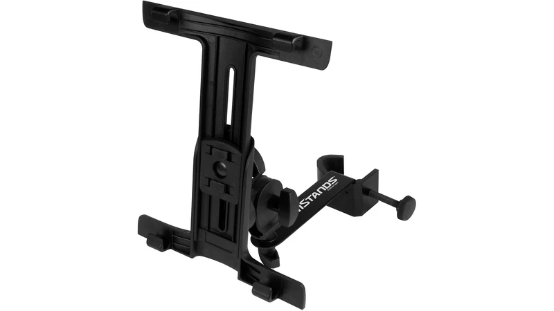 This highly affordable iPad holder puts your music, lyrics, set lists, tabs, contacts right at your fingers! The JS-MNT101 mounts to the pole of nearly any microphone stand and securely holds all iPads including the iPad mini. You can adjust the angle and axis of your iPad easily at two different points on the JSMNT101. You can easily choose to clamp your iPad in landscape or portrait view using an additional adjustment knob on the back of the holder itself.