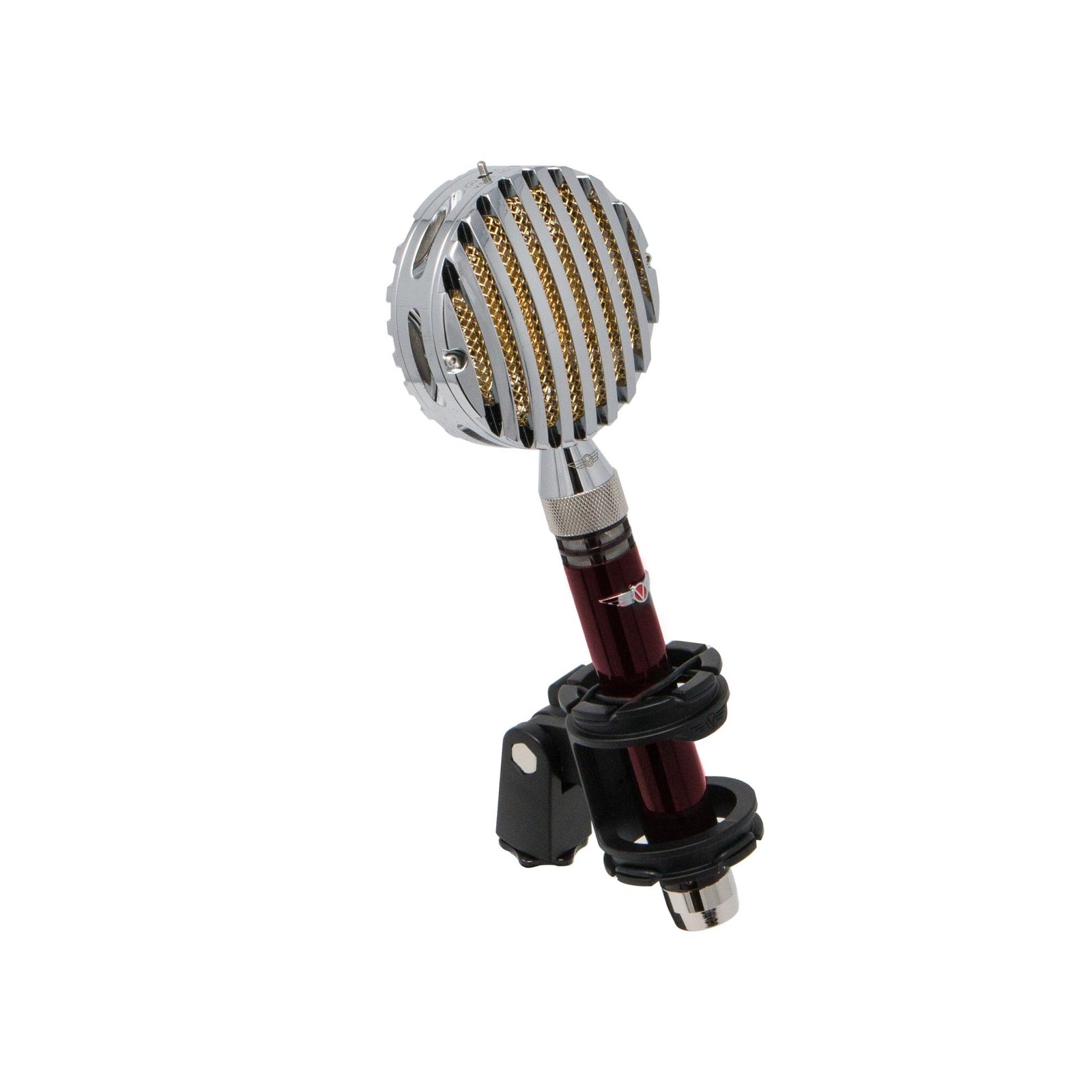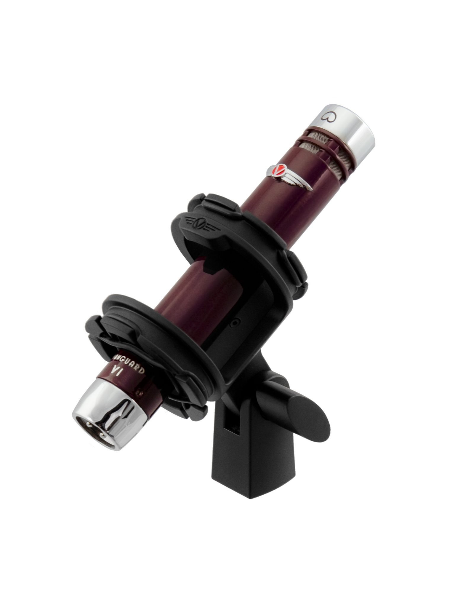 The V34C “LOLLI” Capsule houses an extra-large 34mm edge-terminated, gold-sputtered 3µm Mylar dual-capsule assembly which is custom-voiced with a proprietary hand-tuning process. It is placed in a shockmount saddle nestled in a retro-aesthetic chassis CNC-machined from solid aircraft-grade aluminum billets. Open-weave mesh, a carefully radiused interior, and precision-machined venting prevent standing reflections and allow for an “open-air” voicing. We engineered the V34C LOLLI head to spin 360 degrees while mounted on the V1, allowing for quick Y-axis positioning adjustments with no futzing around with mic stands.
