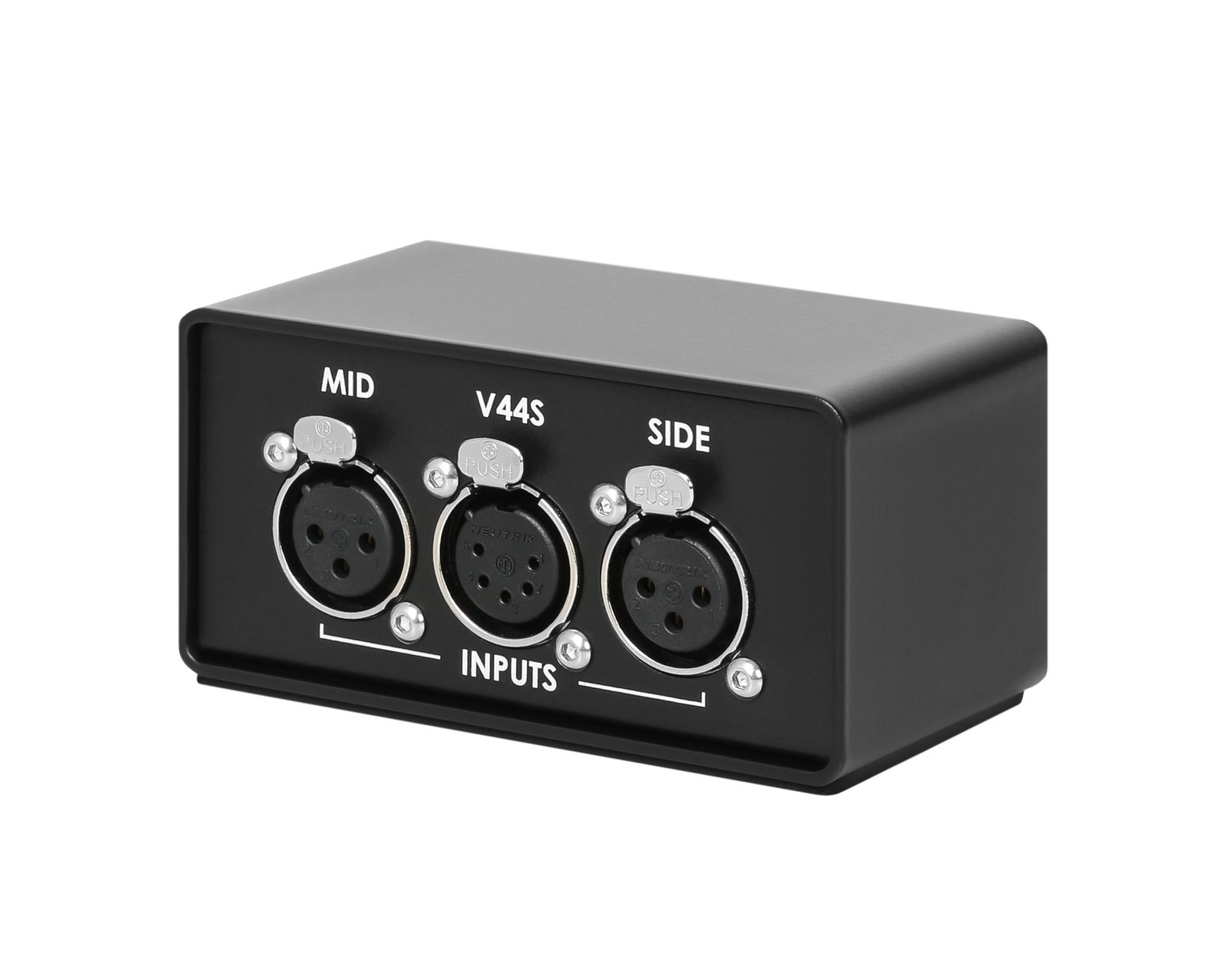 The included splitter box contains an additional phase-reversed top capsule output, which is perfect for less-than-ideal recording conditions such as concert taping. This allows mid-side recording with no additional mixer patching.