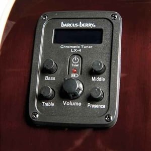 The Washburn Festival Series EA55G-A acoustic-electric guitar has a cutaway body made of catalpa with a laminated koa top. Its familiar C-shaped mahogany neck features a 20-fret rosewood fingerboard. An under-the-saddle piezo pickup and a 4-band Barcus Berry preamp with built-in tuner gives you the freedom to play an EA55G-A with confidence at any venue. Other features on this Washburn acoustic-electric guitar include chrome die-cast Grover-style tuning machines, white body and neck binding, an abalone-style rosette and a buffed gloss finish.