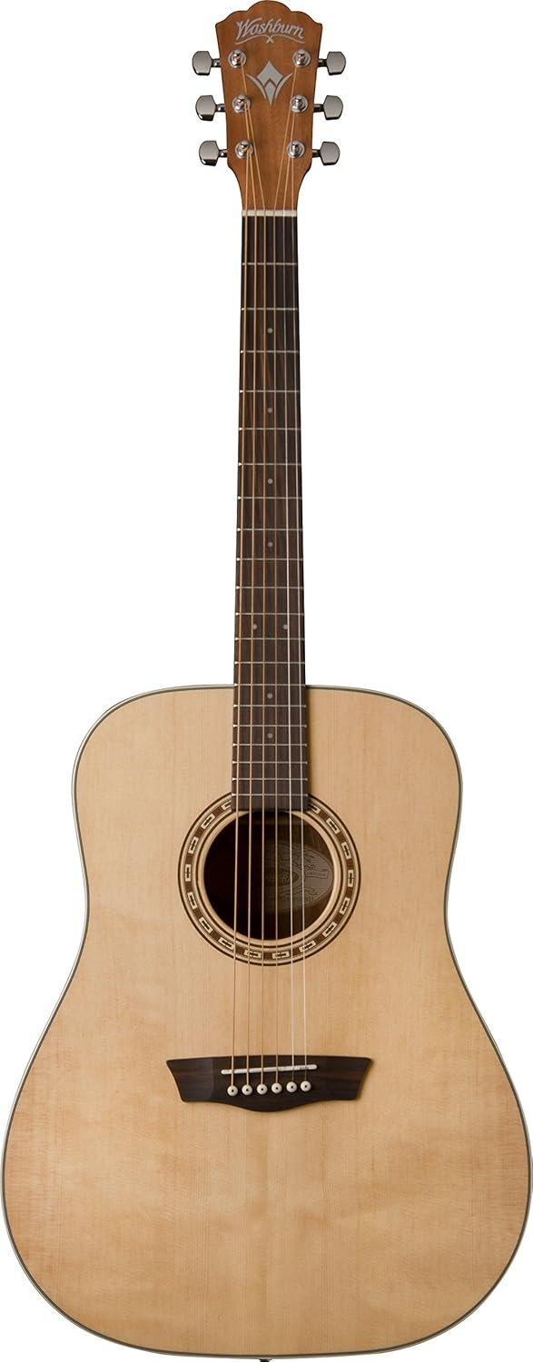 Washburn Harvest 6 String Acoustic Guitar, Right, Light Brown (WD7S-A)