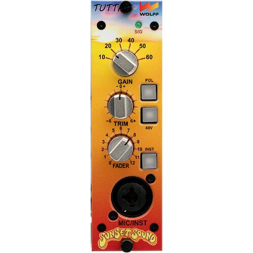 Made in collaboration between Paul Wolff and Sunset Sound, the Wolff Audio Tutti Mic Pre is a 500 series mic/instrument preamp module based on the legendary preamp of the Studio 1 console. Sporting high-quality analog components such as discrete dual 990 op-amps and custom dual Cinemag nickel I/O transformers, this module offers classic warmth and versatility.
