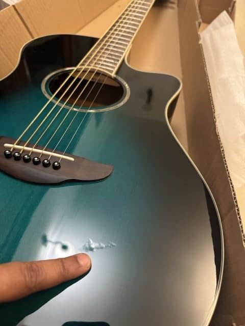 Pathetic packaging, seems used item, torn box, big crack near pick-up, lots of fingerprints and dust on the guitar.But the sound of the guitar is amazing! I would have kept it, if received a fresh item. Waiting for the refund now.