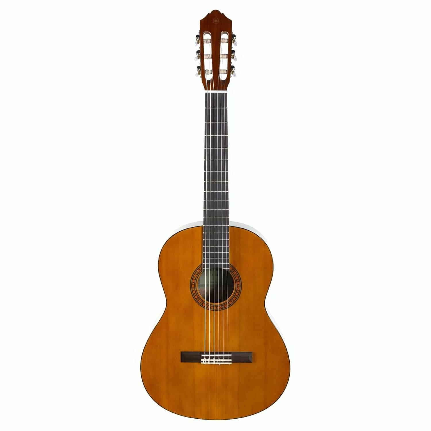 The CS40 is designed specifically for young learners with a scale length, compact body and thinner neck (48mm) that offer excellent playing comfort. That combined with excellent playability and superior tone, make it an instrument that will keep practice inspirational and exciting. The CS40 might be one of Yamaha’s most inexpensive 3/4 -size classical models, but its quality and tone are outstanding. A real bargain for beginners. Since its launch in the early 1990’s these Yamaha Classical guitars have amassed a wide range of industry awards and is now firmly established as the instruments of choice amongst guitar teachers, beginners and young learners alike. Nylon string, traditionally styled headstock and sound hole decoration finish. The CS40 is outstanding value for money and a combination of exceptional playability, superb tone and a sound quality normally only associated with more expensive instruments. Top quality materials including a spruce top, rosewood fingerboard matched by Yamaha’s renowned reliability and durability have also made it a regular fixture in UK’s classrooms. Spec: Finish: Gloss String Scale: 580 mm (22 13/16″) Body Depth: 80-84 mm (3 1/8″-3 1/4″) Finger Board Width (Nut/Body): 48 mm (1 7/8″) Top: Spruce Back: Meranti Side/Rib: Meranti Neck: Nato Finger Board: Rosewood Bridge: Rosewood